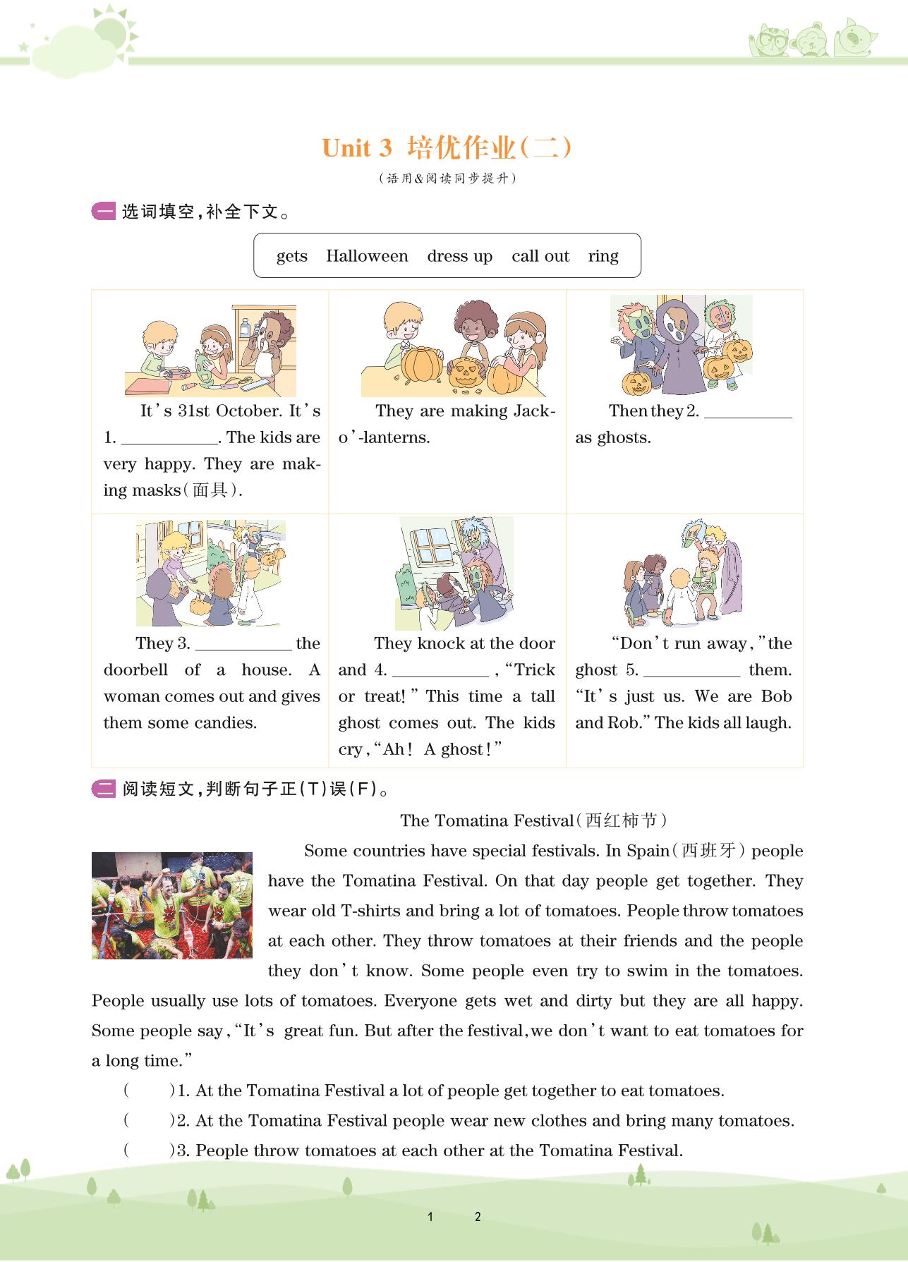 2020上册六年级英语剑桥版 Unit 3 培优作业(二)
