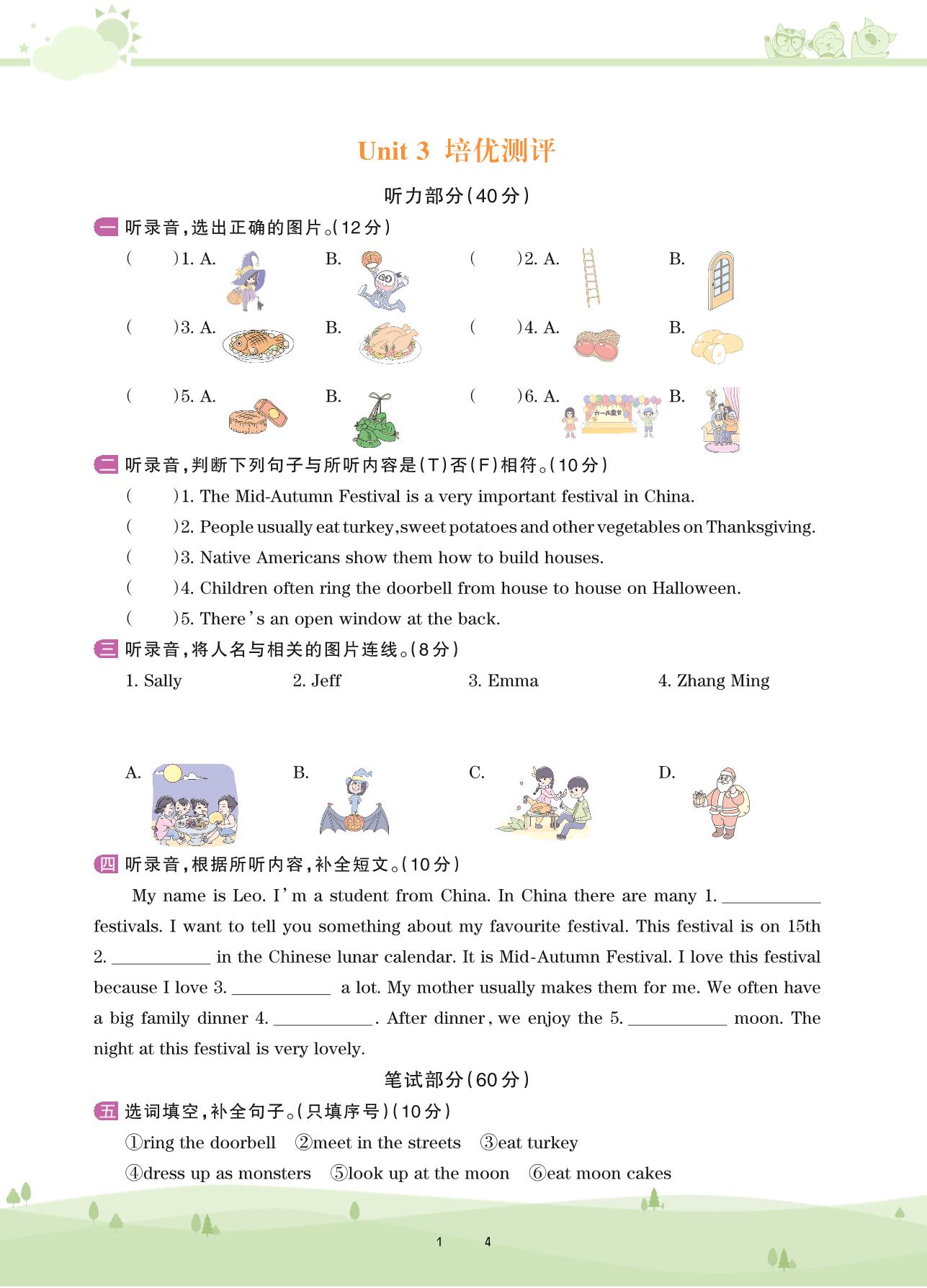 2020上册六年级英语剑桥版 Unit 3 培优测评