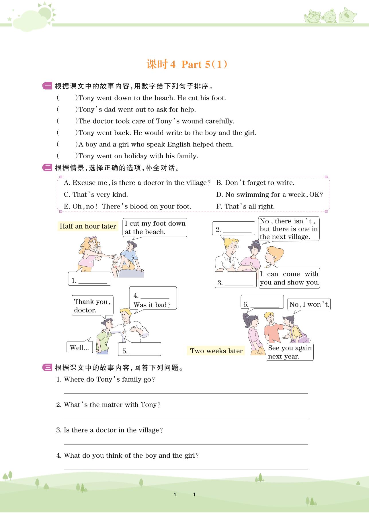 2020上册六年级英语剑桥版 Unit 4—课时4 Part 5(1)