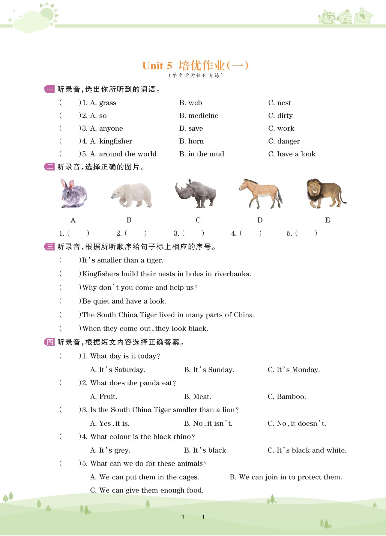 2020上册六年级英语剑桥版 Unit 5 培优作业(一)