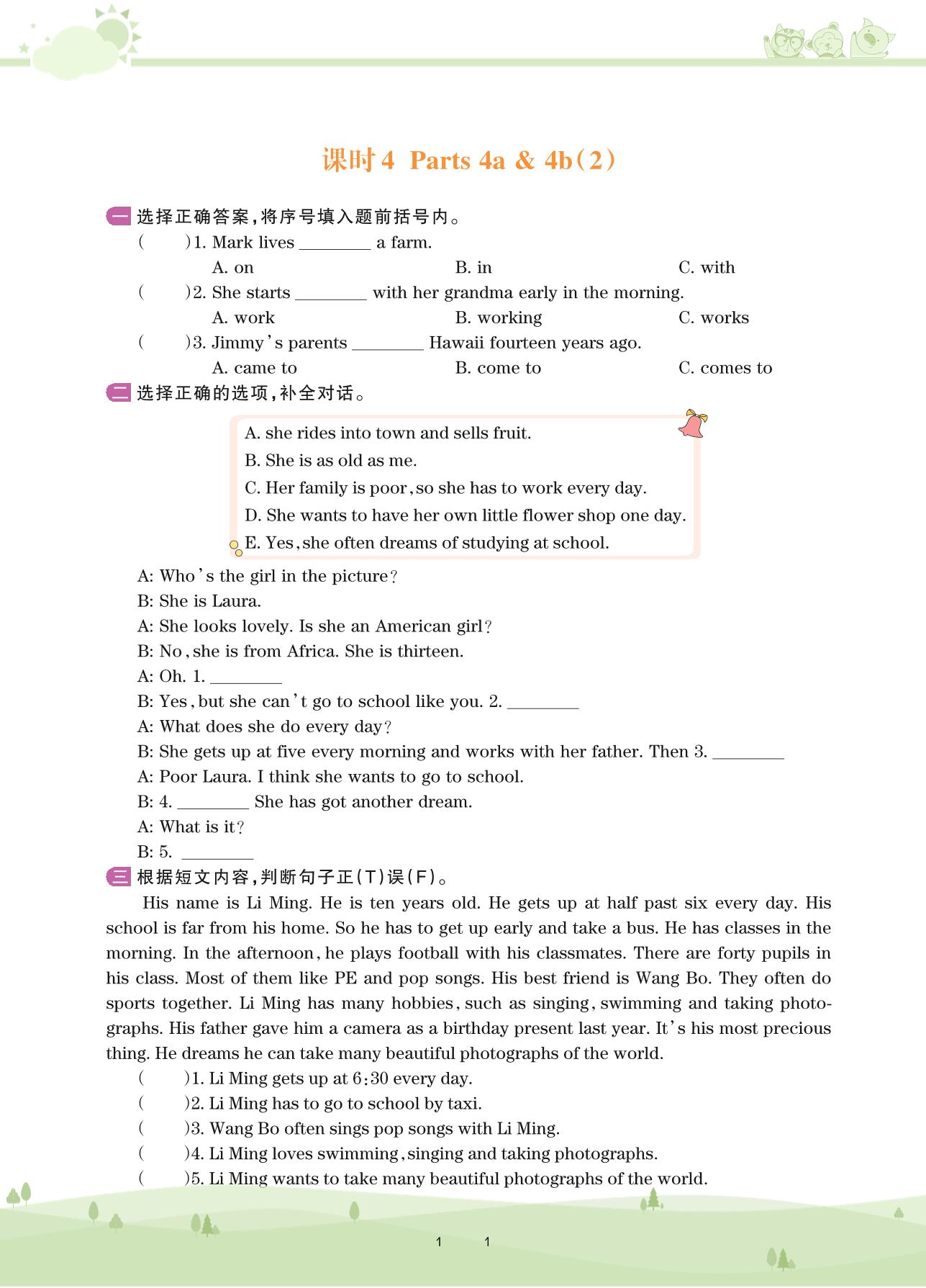 2020上册六年级英语剑桥版 Unit 6—课时4 Parts 4a & 4b(2)