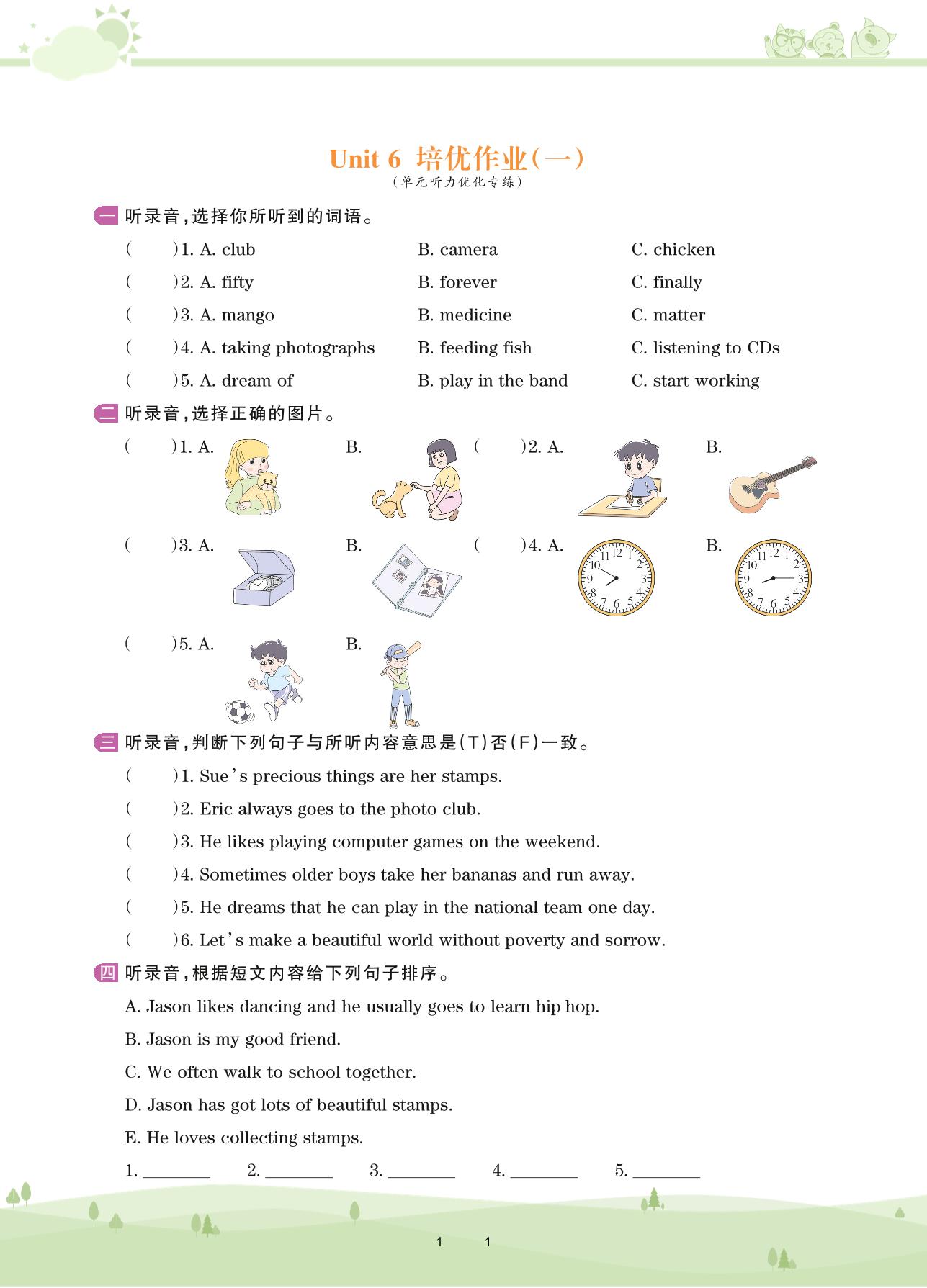 2020上册六年级英语剑桥版 Unit 6 培优作业(一)