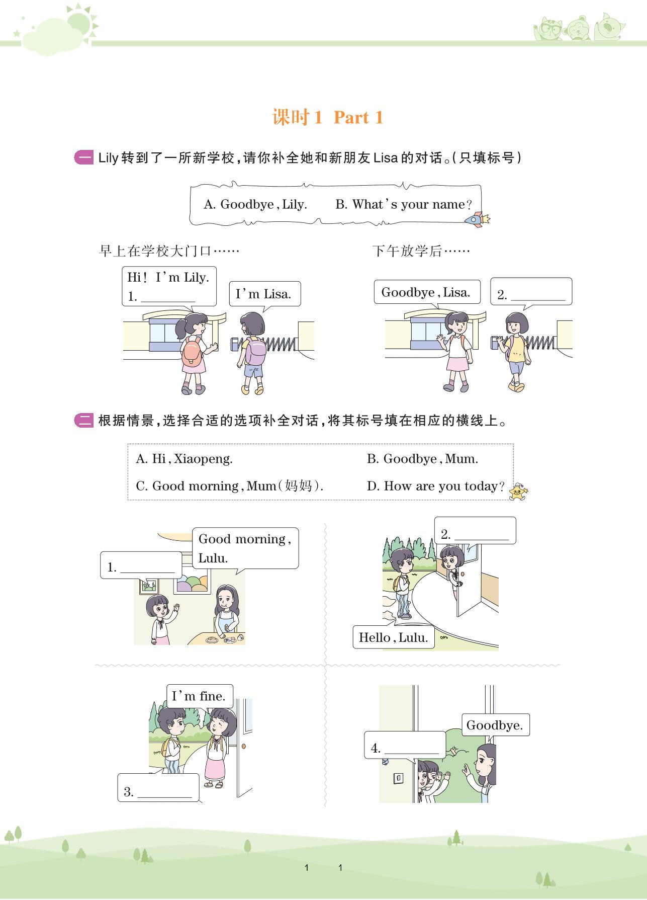 2020上册三年级英语剑桥版 Starter unit—课时1 Part 1