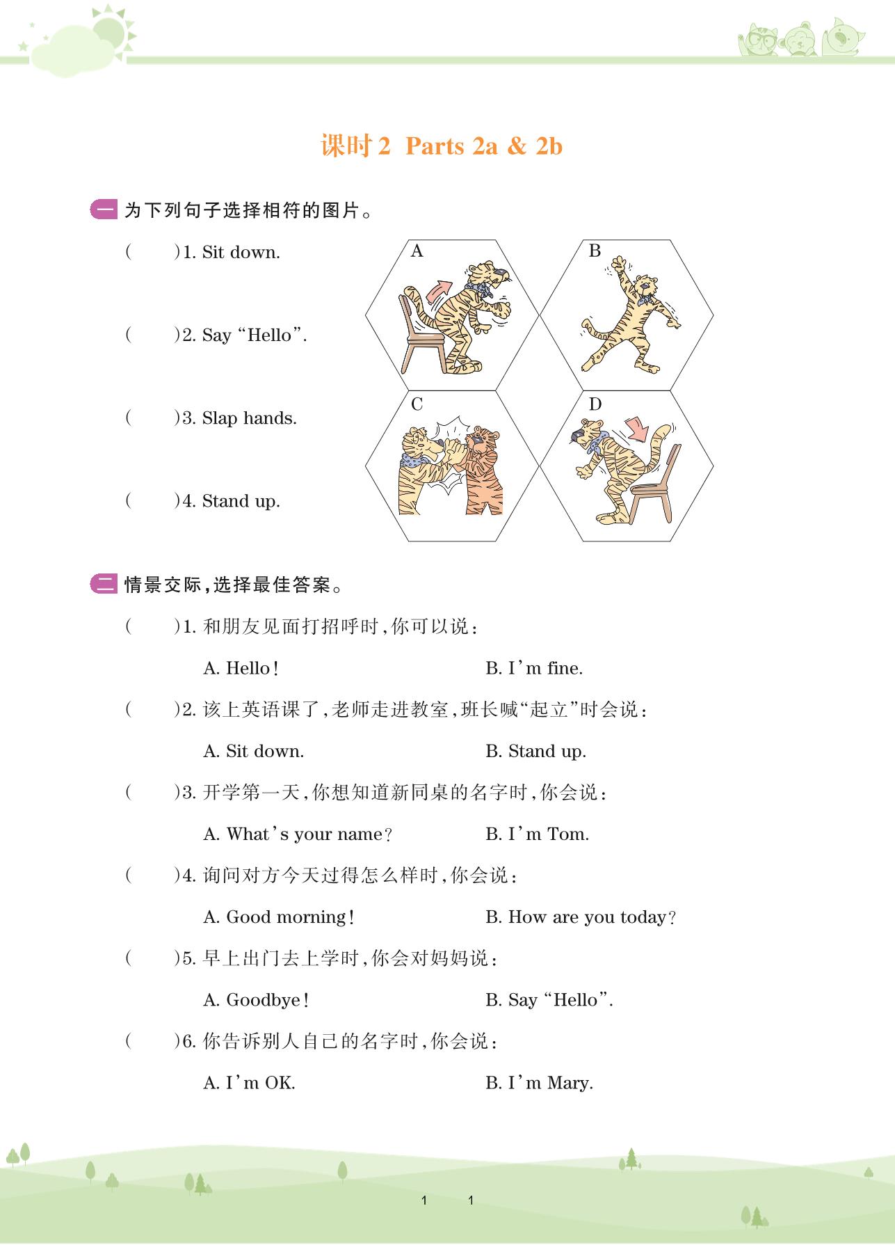 2020上册三年级英语剑桥版 Starter unit—课时2 Parts 2a & 2b