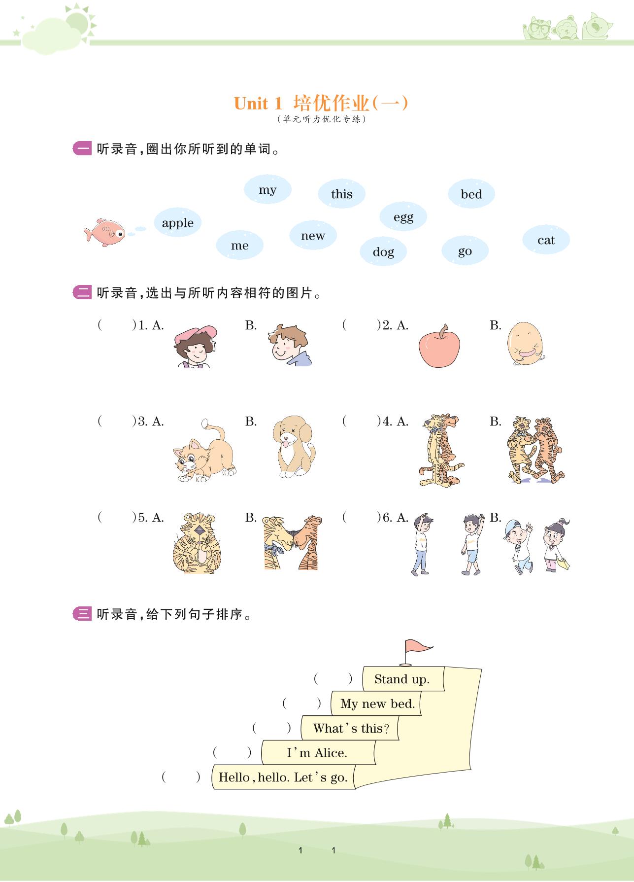 2020上册三年级英语剑桥版 Unit 1 培优作业(一)