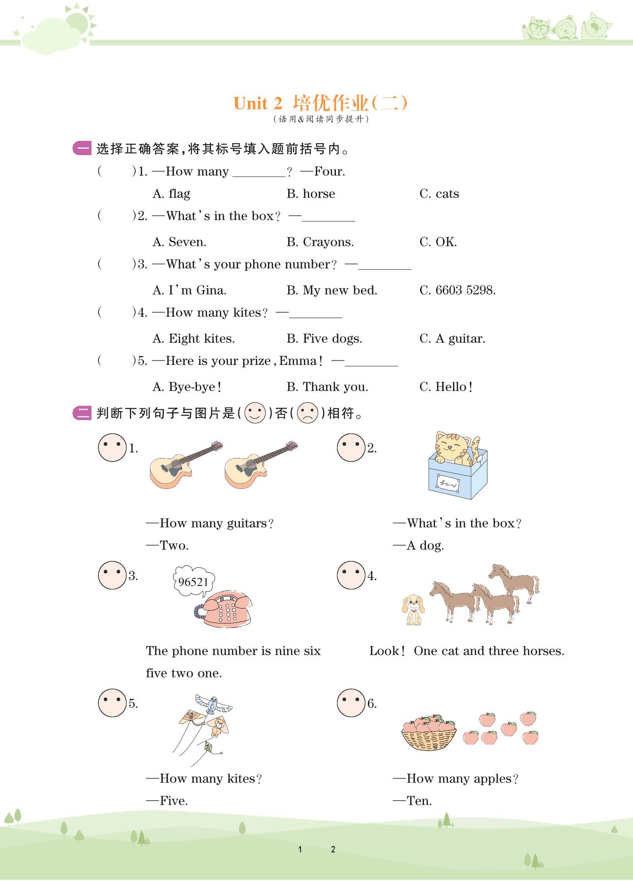 2020上册三年级英语剑桥版 Unit 2 培优作业(二)