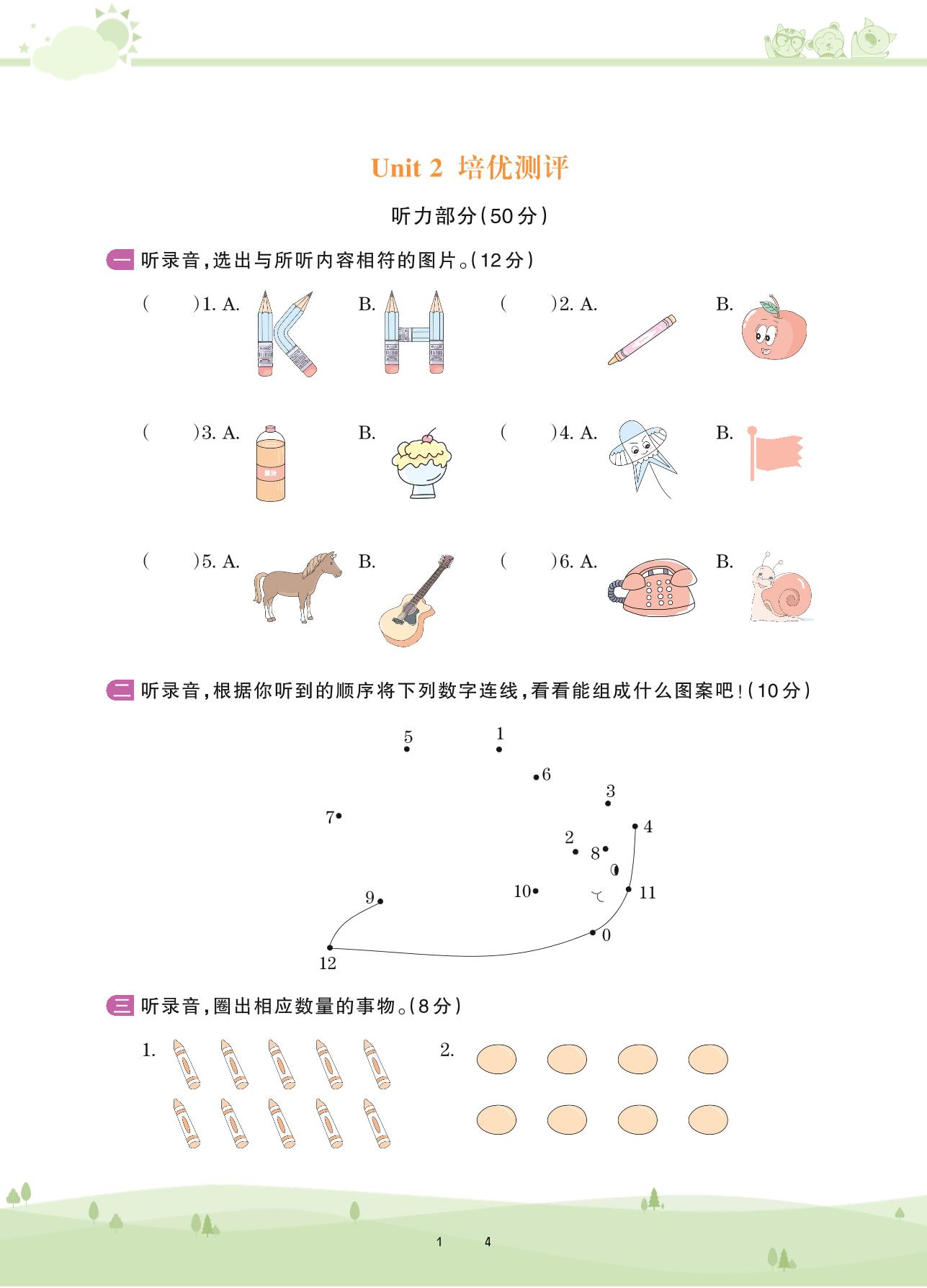 三年级英语剑桥版上册单元卷