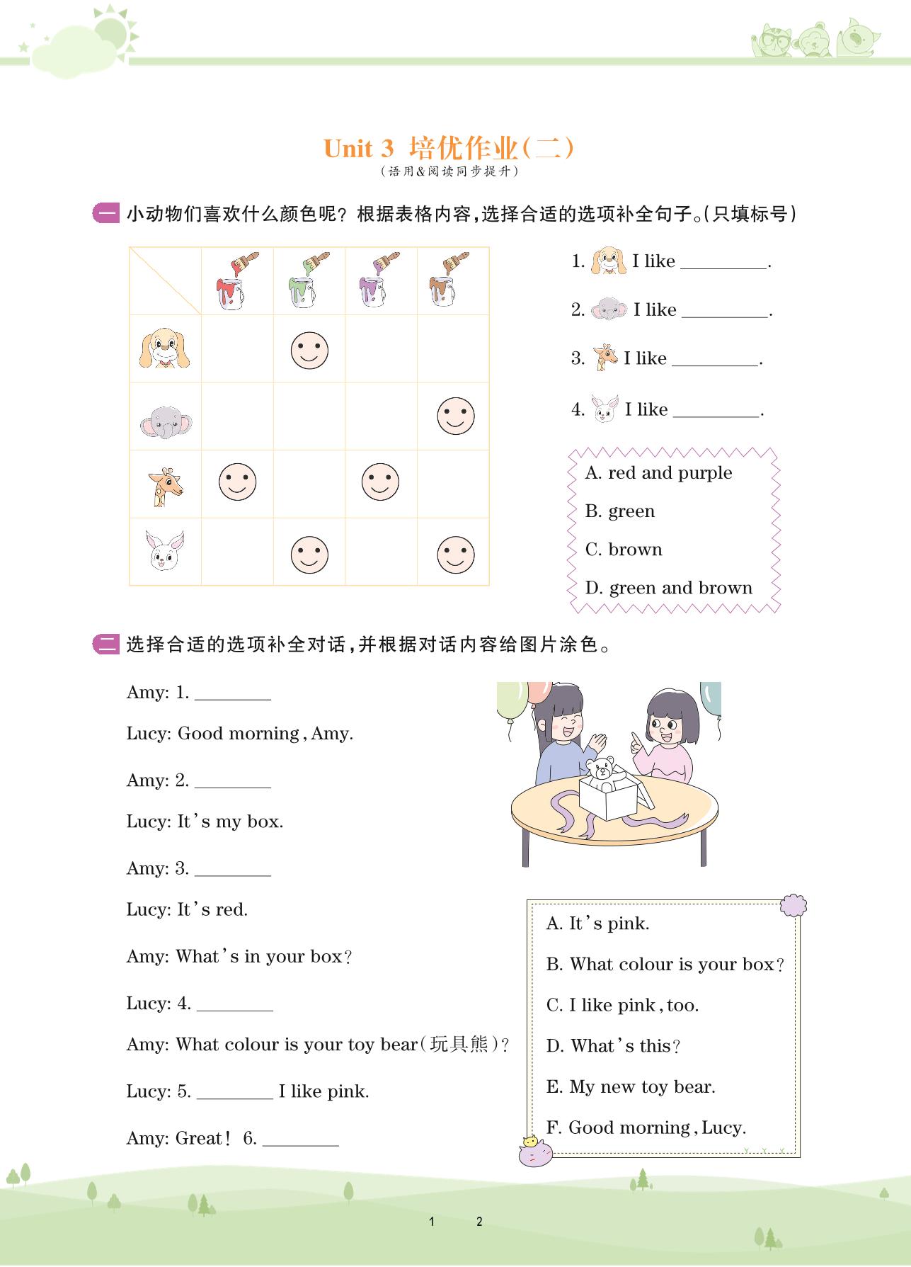 2020上册三年级英语剑桥版 Unit 3 培优作业(二)