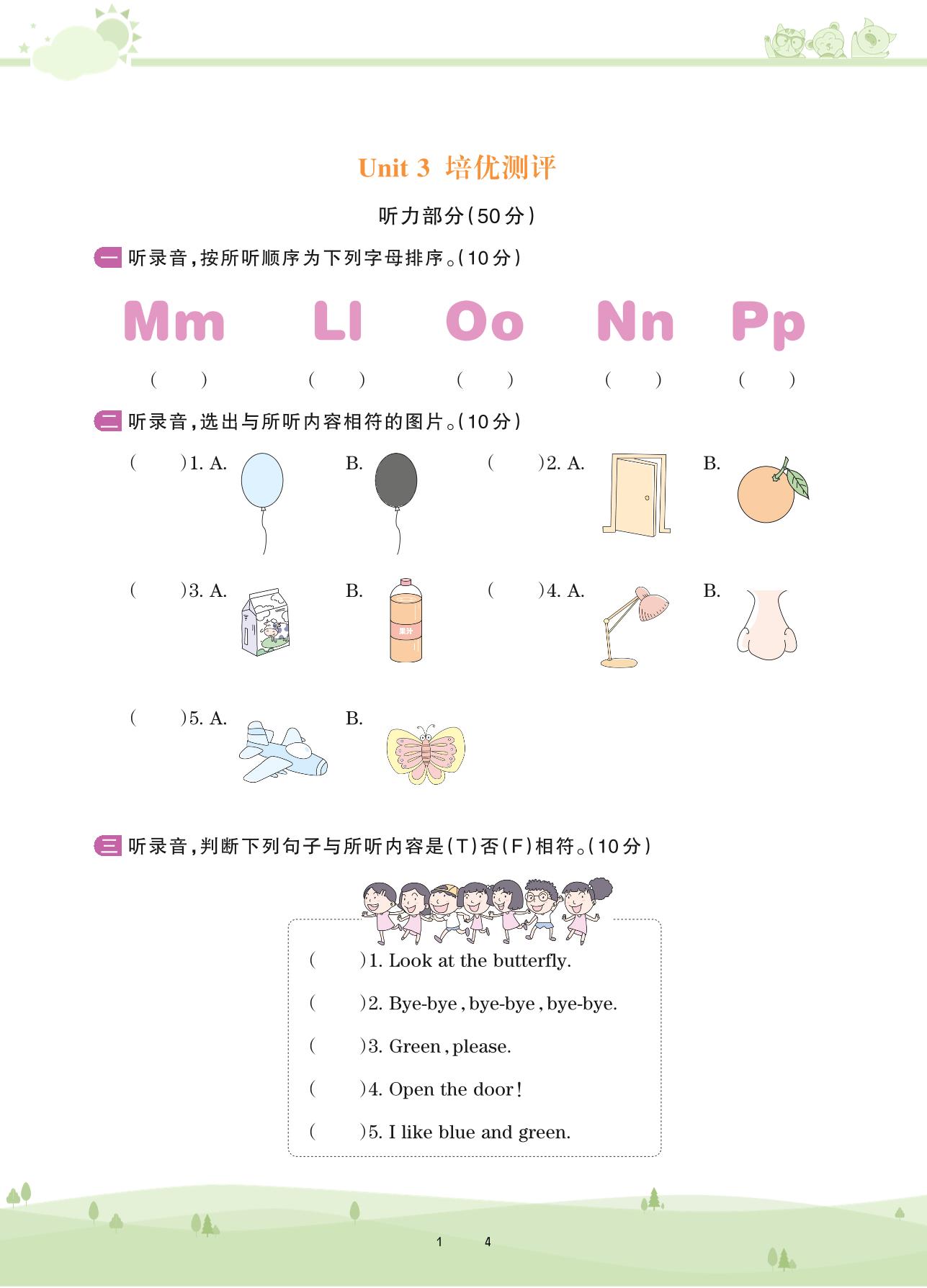 2020上册三年级英语剑桥版 Unit 3 培优测评