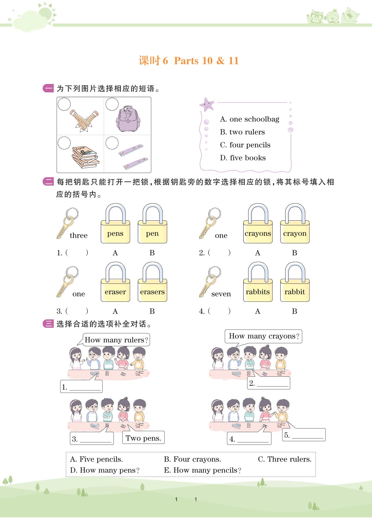 2020上册三年级英语剑桥版 Unit 4—课时6 Parts 10 & 11