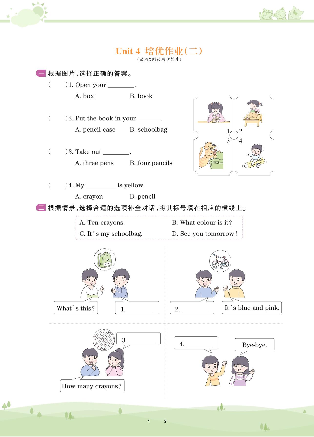 2020上册三年级英语剑桥版 Unit 4 培优作业(二)