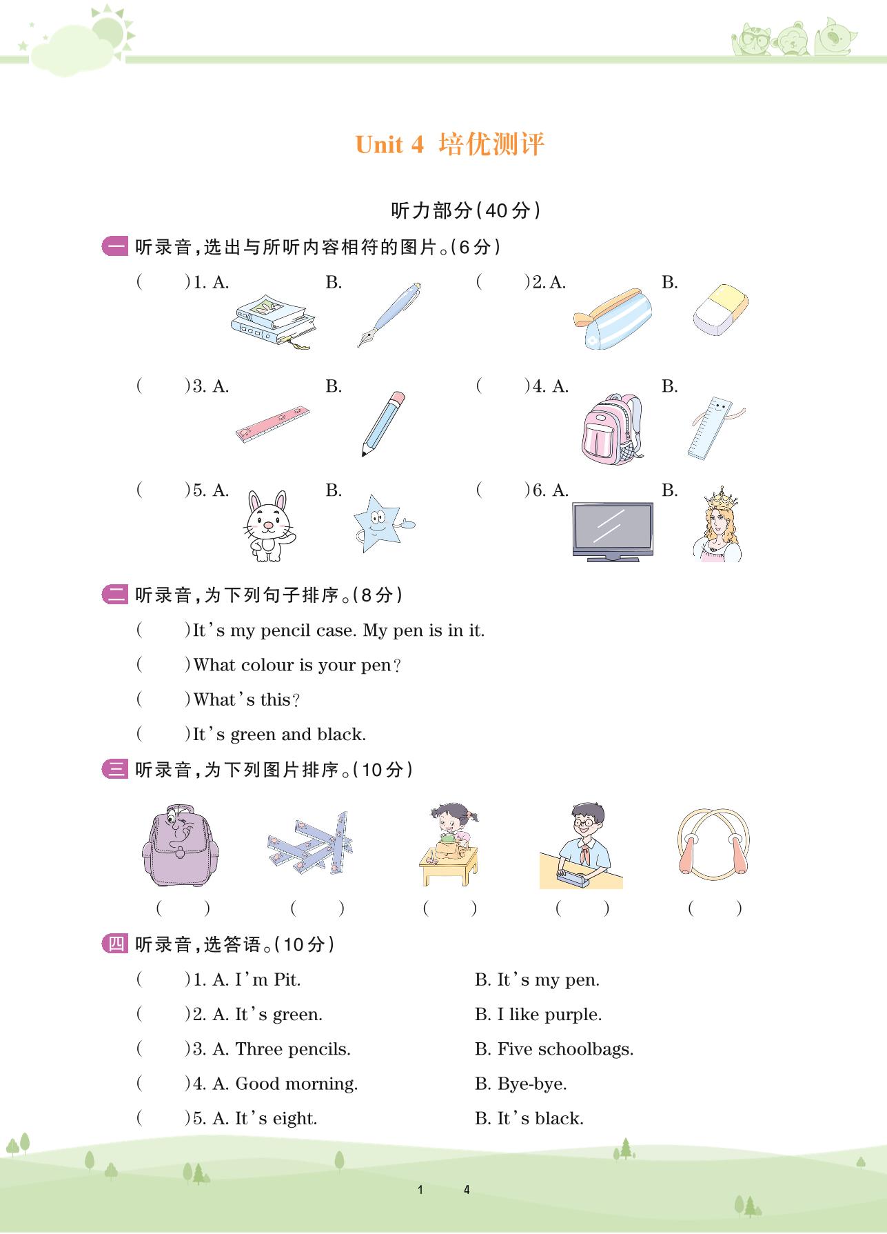 2020上册三年级英语剑桥版 Unit 4 培优测评