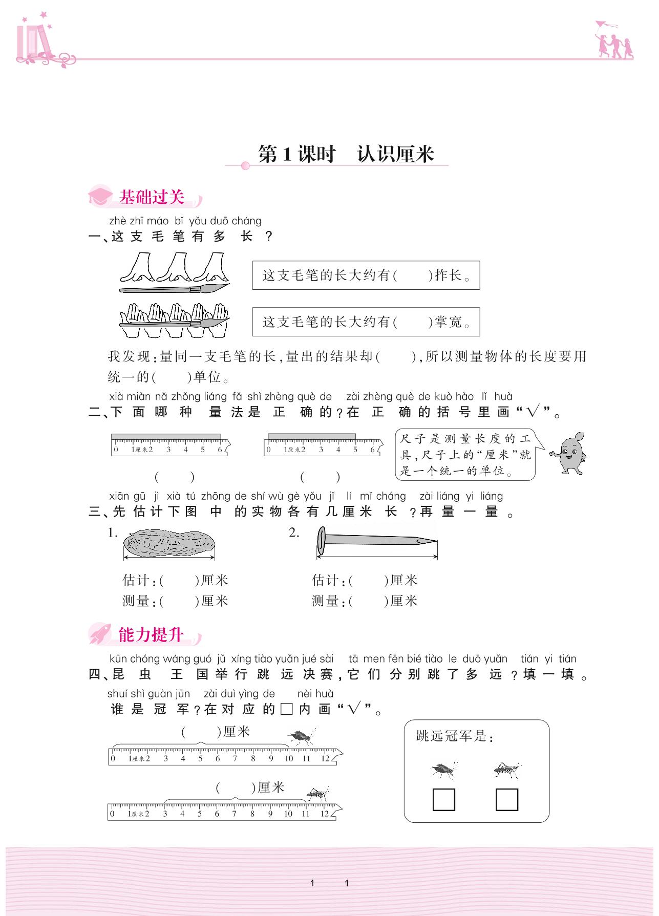 2020上册二年级数学人教版 1 长度单位——第1课时 认识厘米