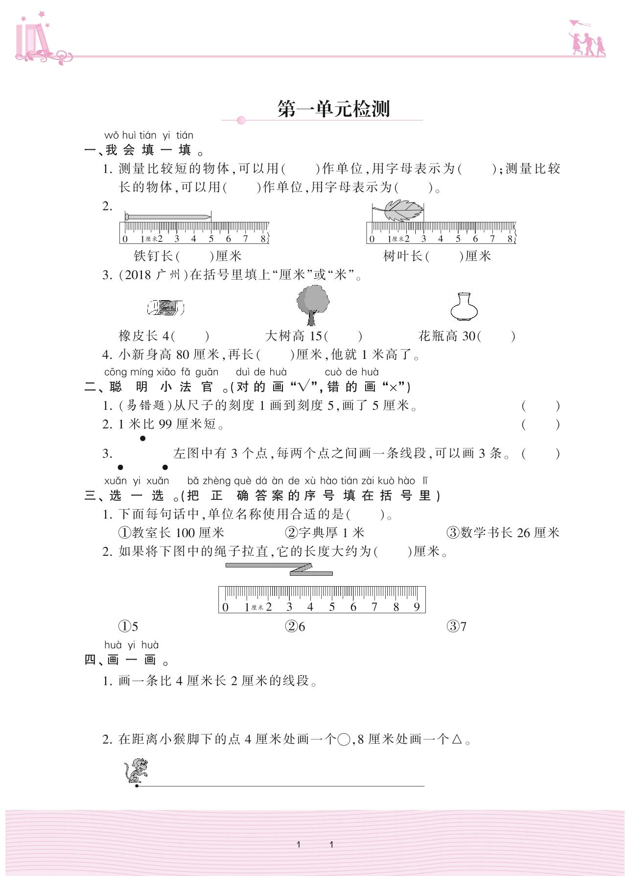 2020上册二年级数学人教版 第一单元检测