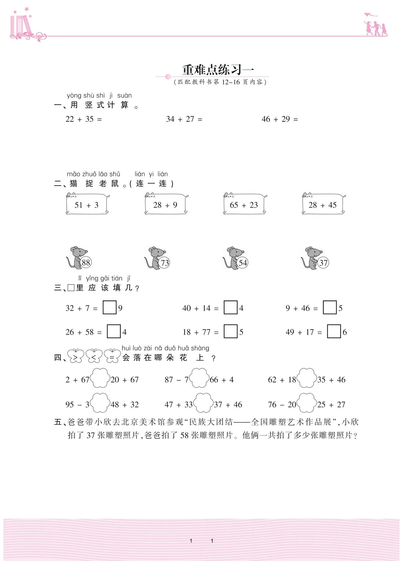 2020上册二年级数学人教版 2 100以内的加法和减法(二)——重难点练习一