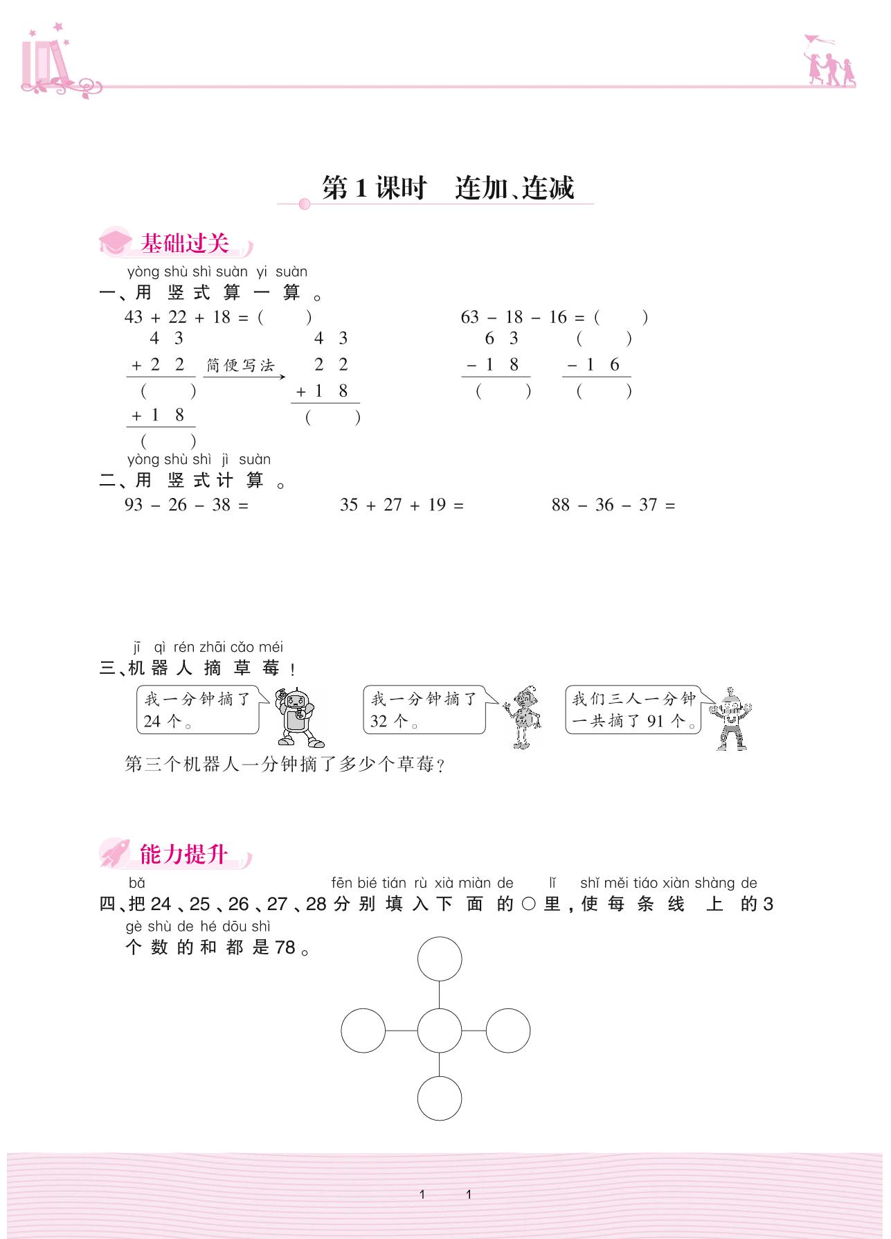 2020上册二年级数学人教版 2 100以内的加法和减法(二) 3. 连加、连减和加减混合——第1课时 连加、连减