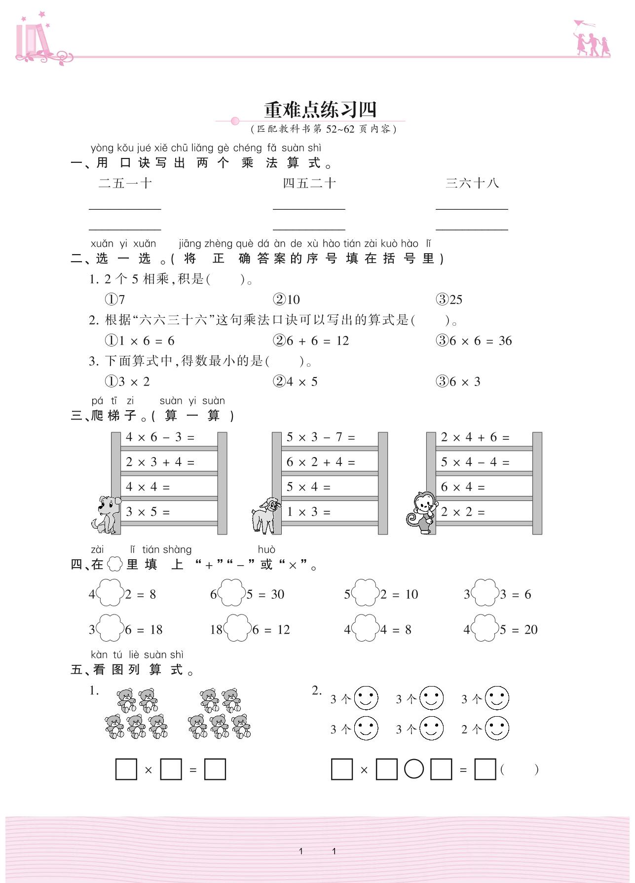 2020上册二年级数学人教版 4 表内乘法(一)——重难点练习四