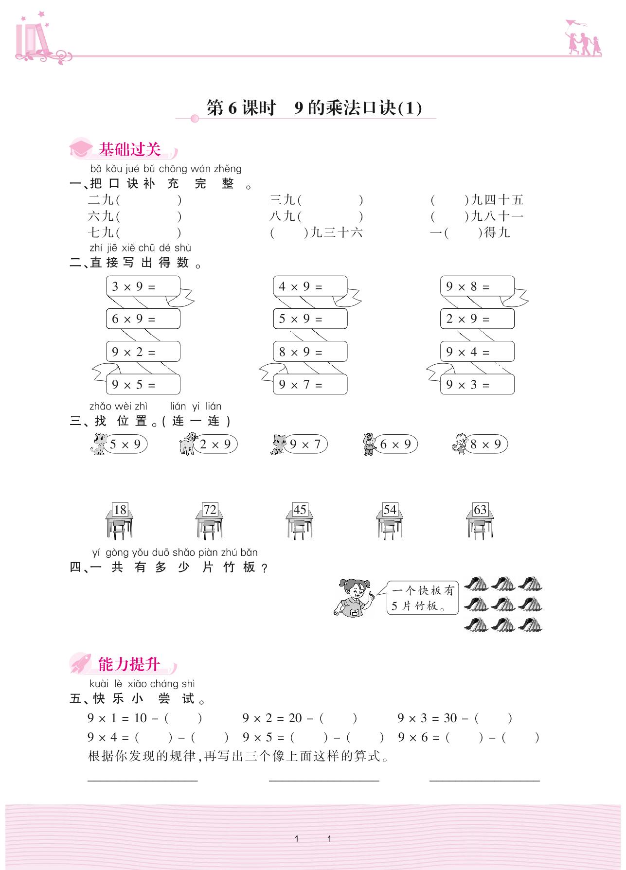 2020上册二年级数学人教版 6 表内乘法(二)——第6课时 9的乘法口诀(1)