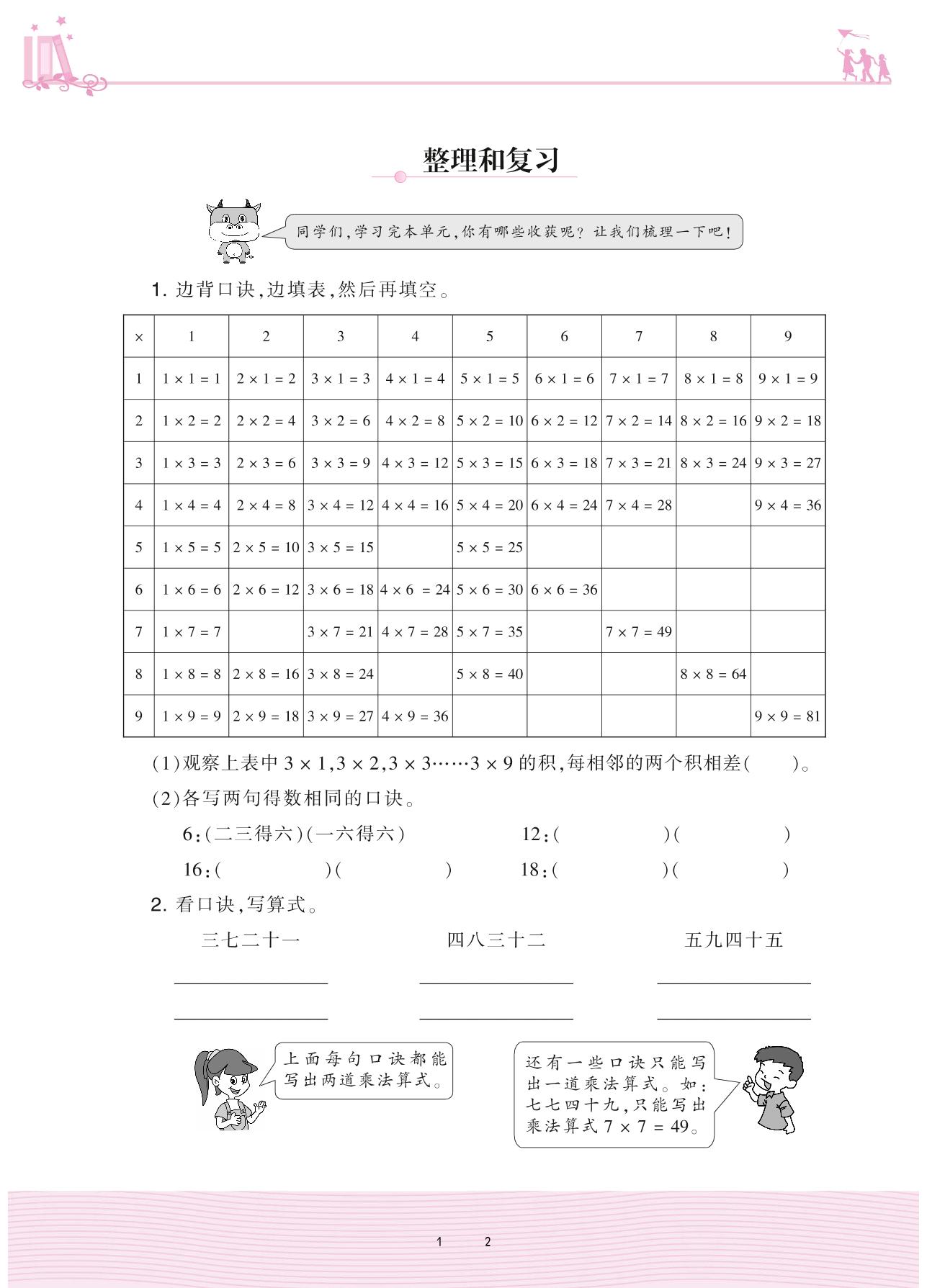 2020上册二年级数学人教版 6 表内乘法(二)——整理和复习