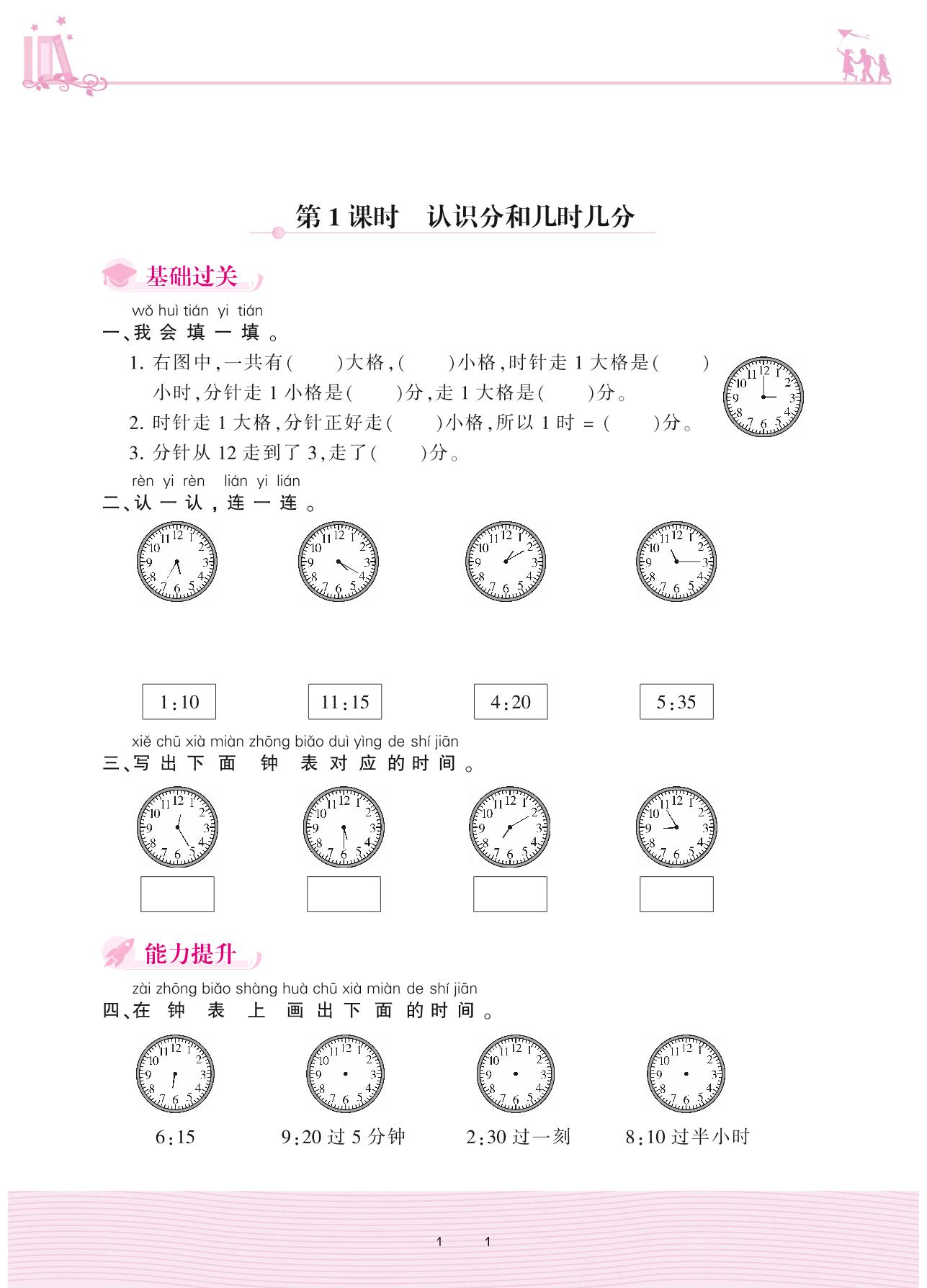 2020上册二年级数学人教版 7 认识时间——第1课时 认识分和几时几分