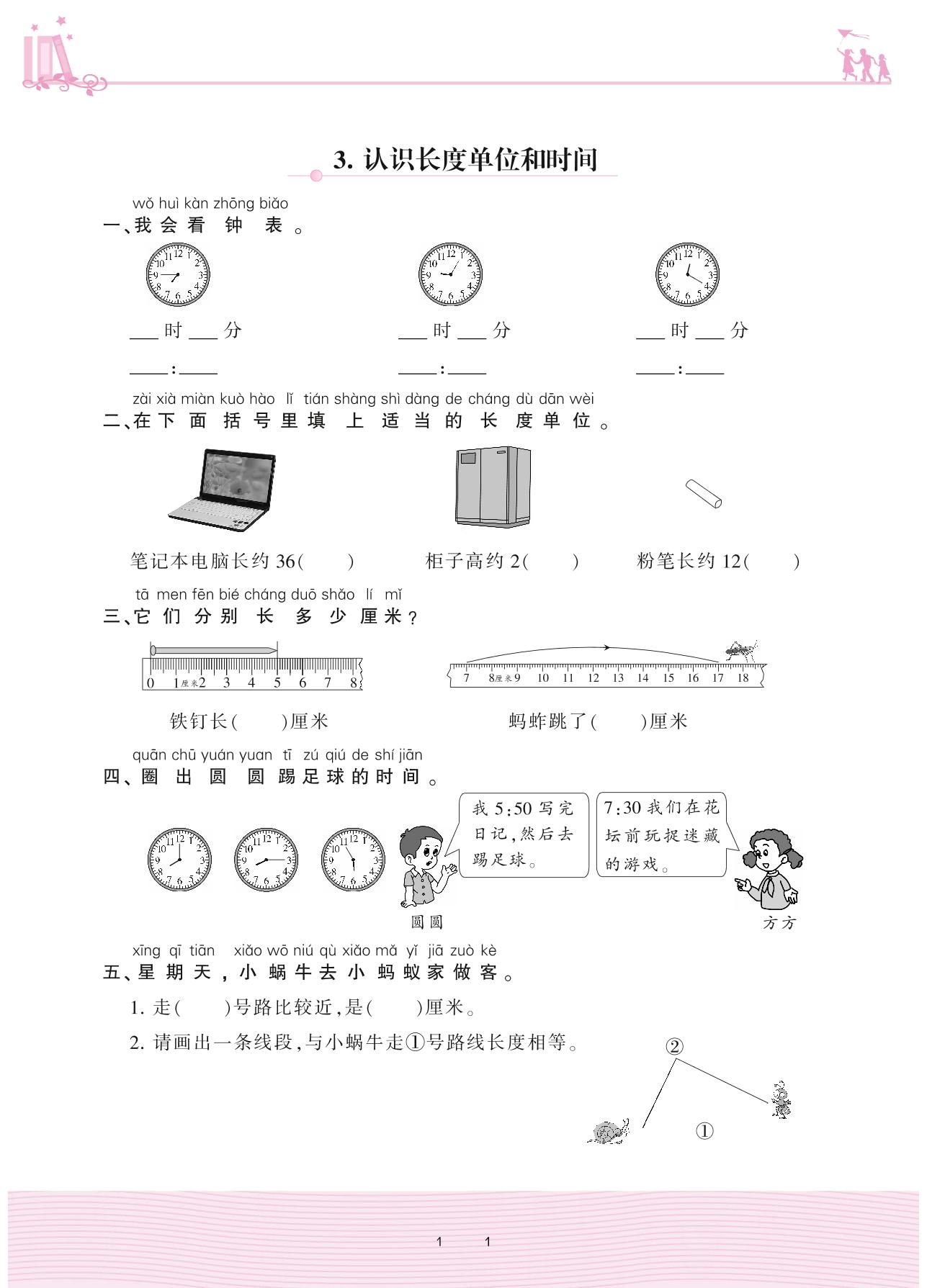 2020上册二年级数学人教版 9 总复习——3. 认识长度单位和时间