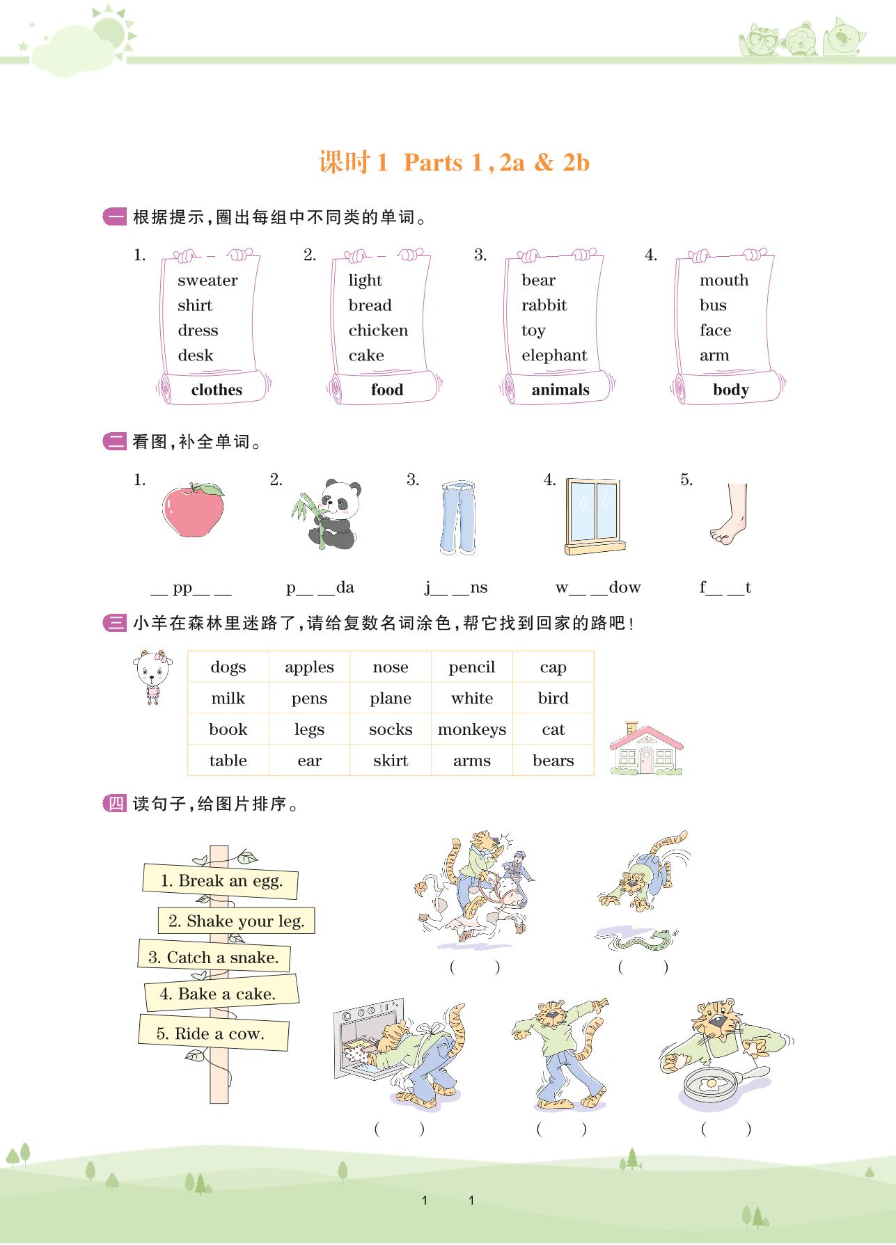 2020上册四年级英语剑桥版 Starter unit—课时1 Parts 1,2a & 2b