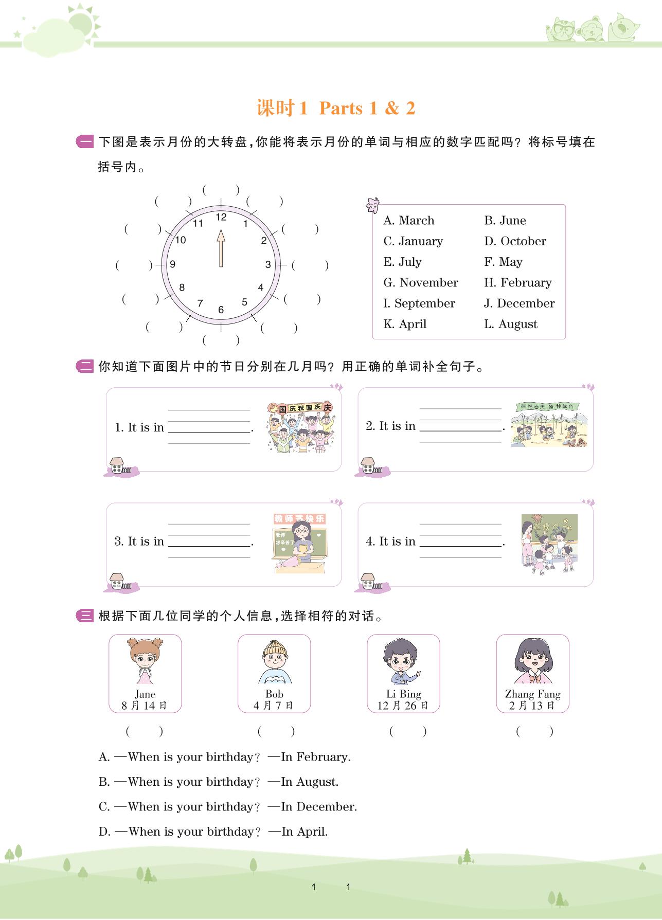 2020上册四年级英语剑桥版 Unit 1—课时1 Parts 1 & 2