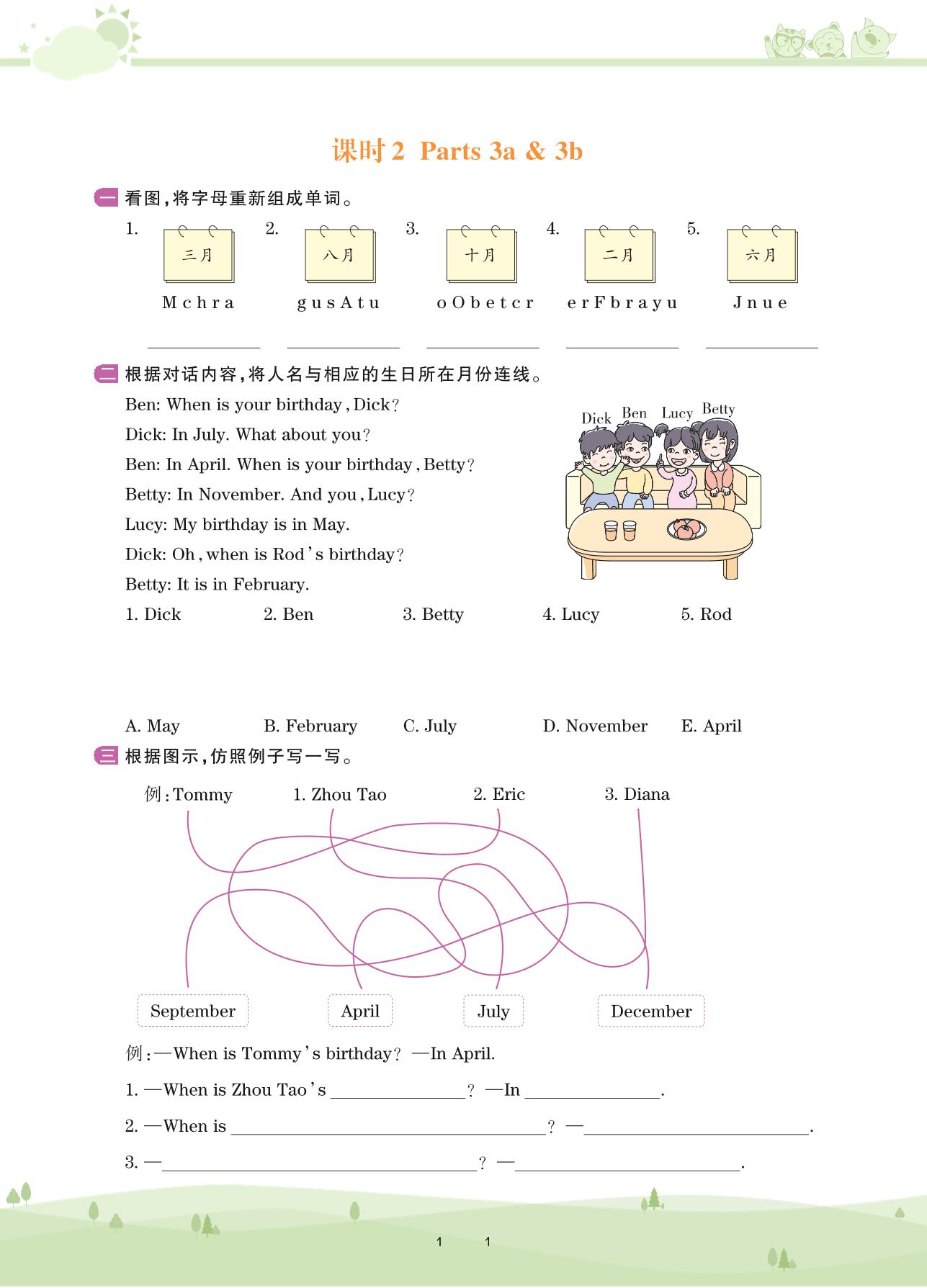 2020上册四年级英语剑桥版 Unit 1—课时2 Parts 3a & 3b