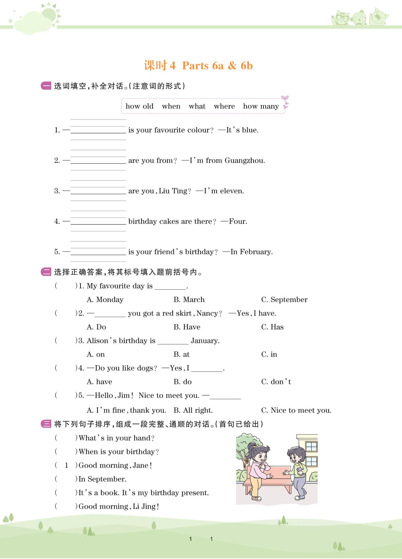2020上册四年级英语剑桥版 Unit 1—课时4 Parts 6a & 6b