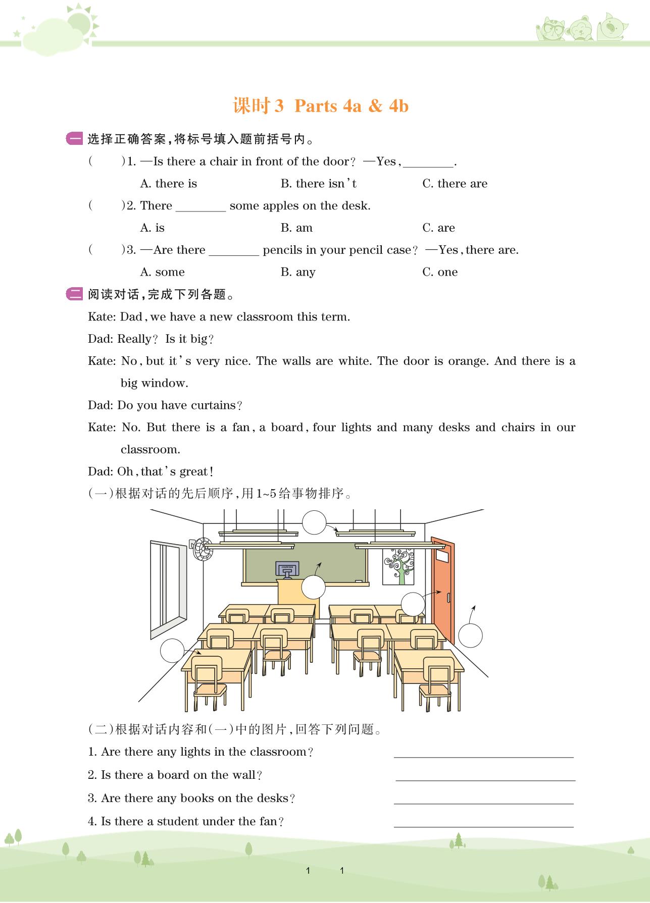 2020上册四年级英语剑桥版 Unit 2—课时3 Parts 4a & 4b