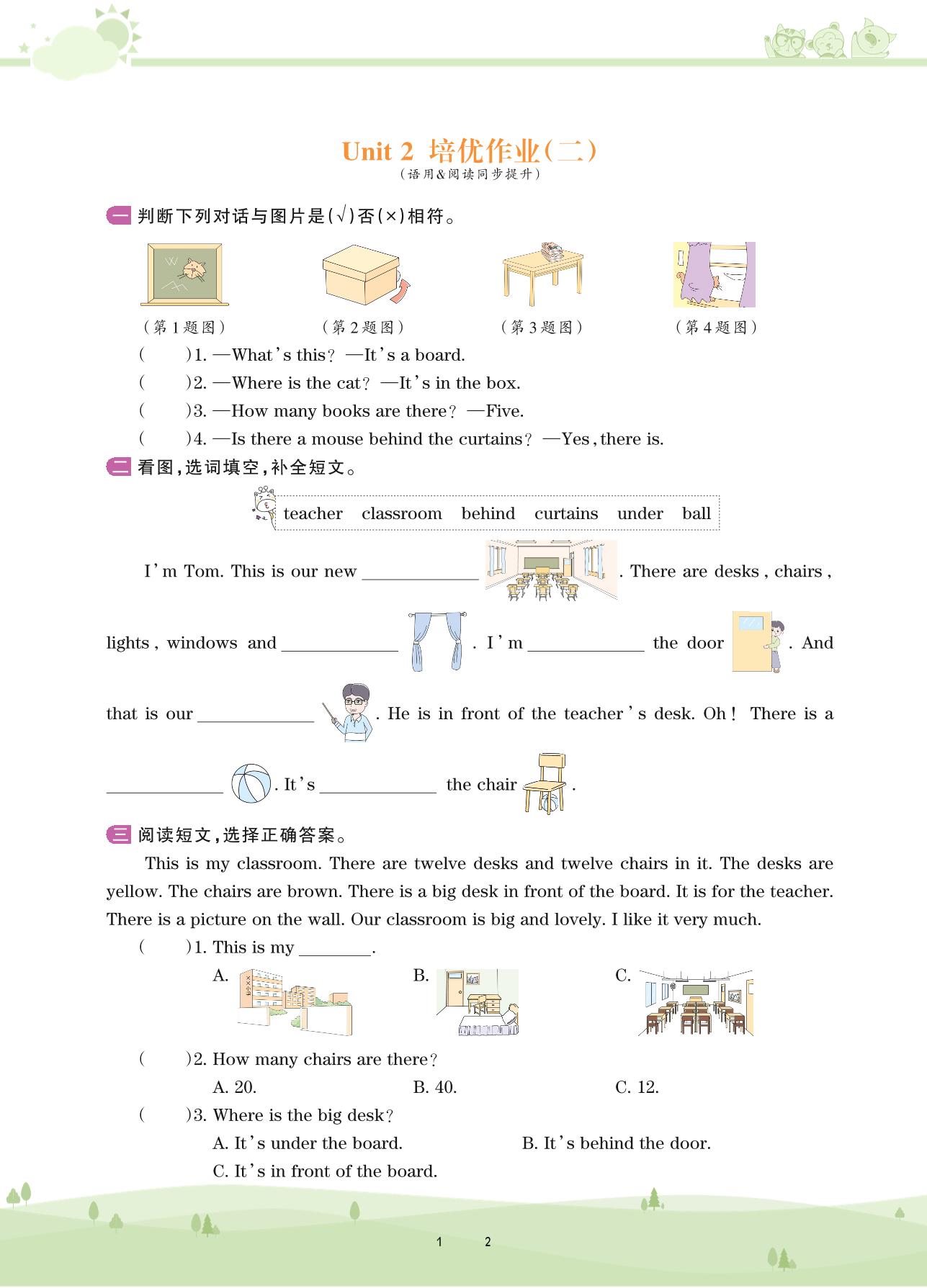 2020上册四年级英语剑桥版 Unit 2 培优作业 (二)
