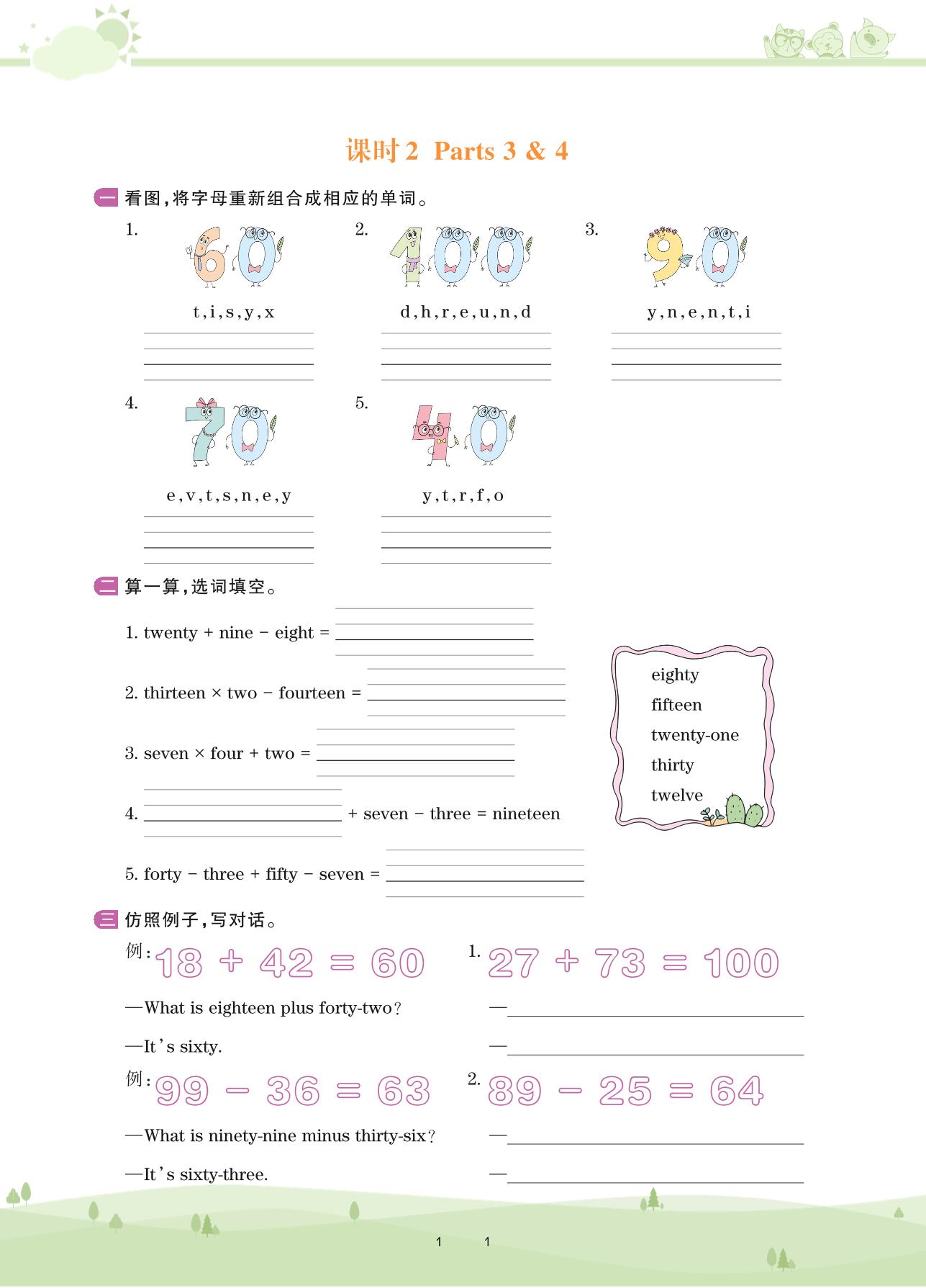 2020上册四年级英语剑桥版 Unit 3—课时2 Parts 3 & 4