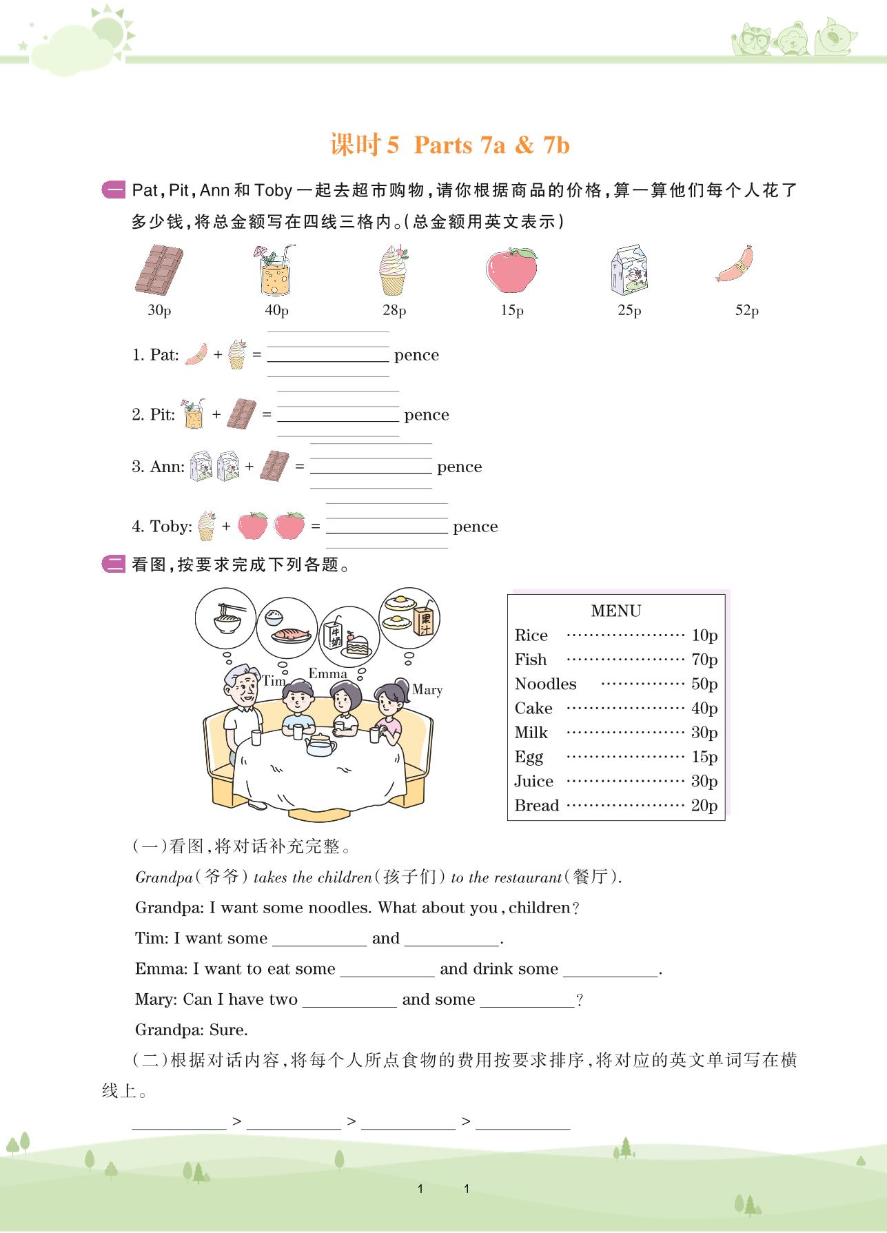 2020上册四年级英语剑桥版 Unit 3—课时5 Parts 7a & 7b