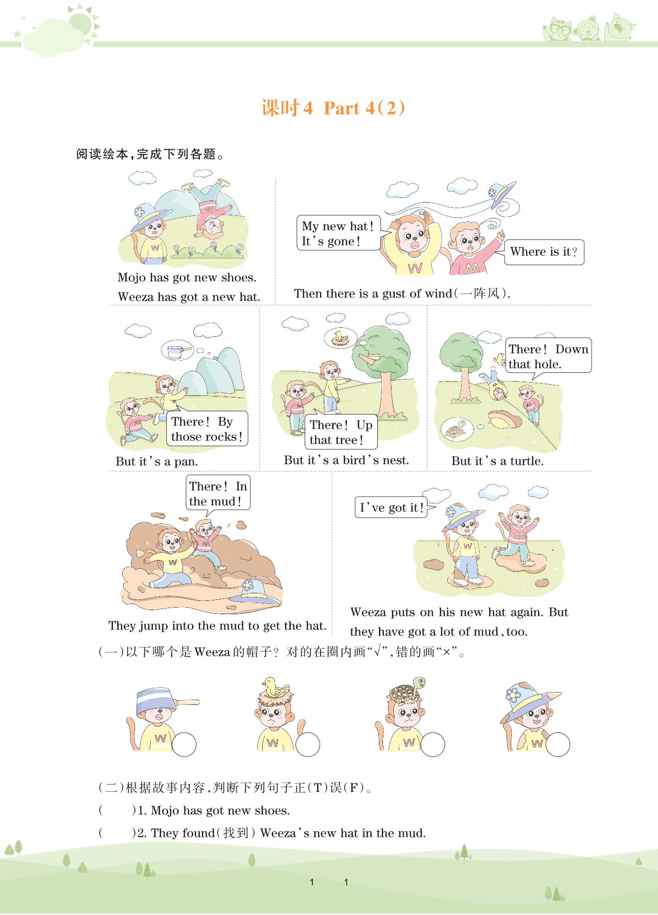 2020上册四年级英语剑桥版 Unit 4—课时4 Part 4(2)