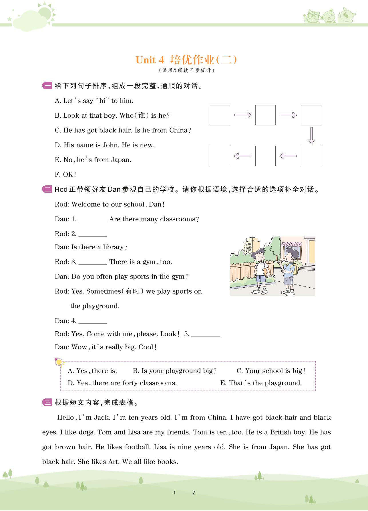 2020上册四年级英语剑桥版 Unit 4 培优作业(二)