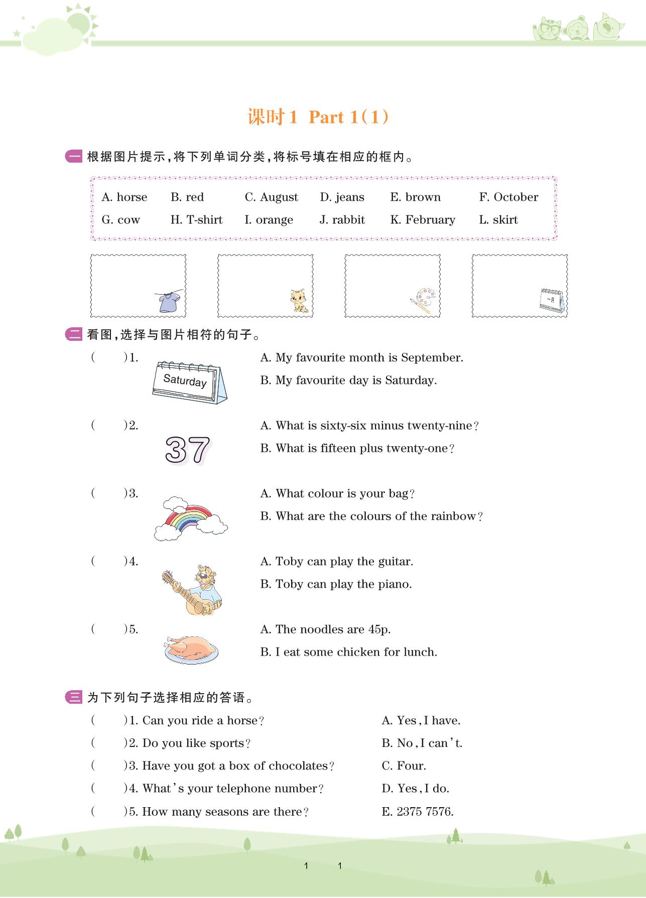 2020上册四年级英语剑桥版 Unit 6—课时1 Part 1(1)