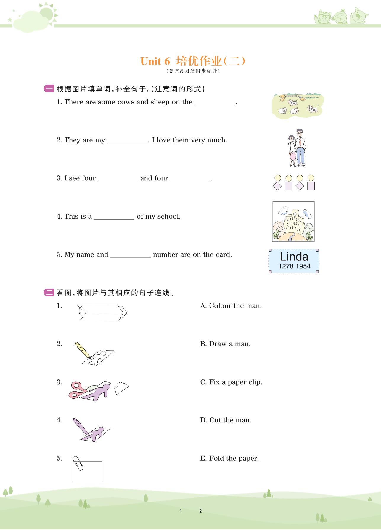 2020上册四年级英语剑桥版 Unit 6 培优作业(二)