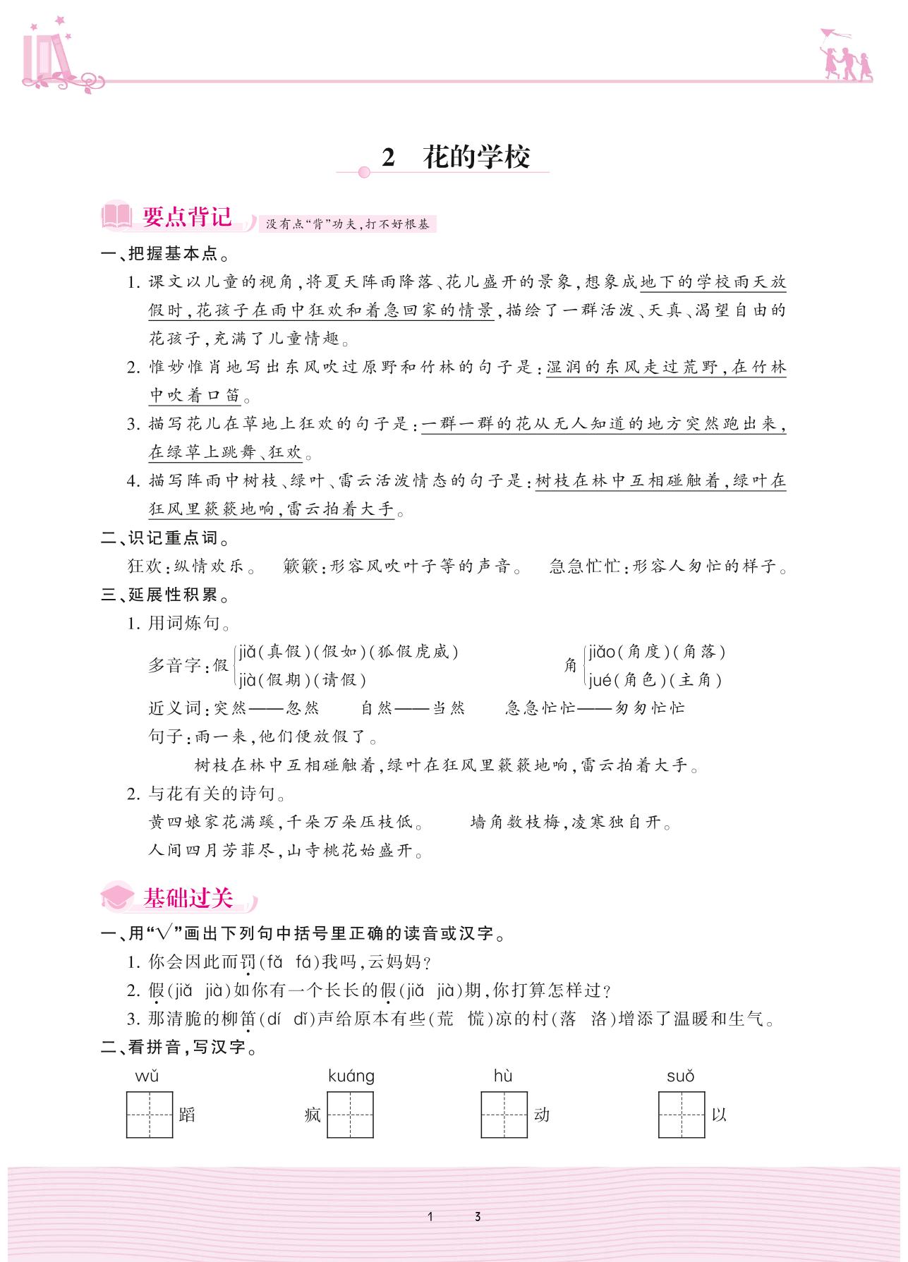 2020上册三年级语文人教版 第一单元——2 花的学校