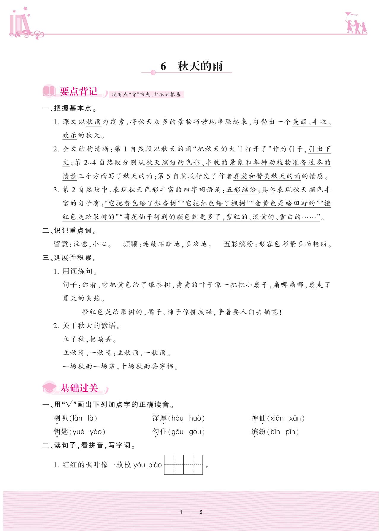 2020上册三年级语文人教版 第二单元——6 秋天的雨