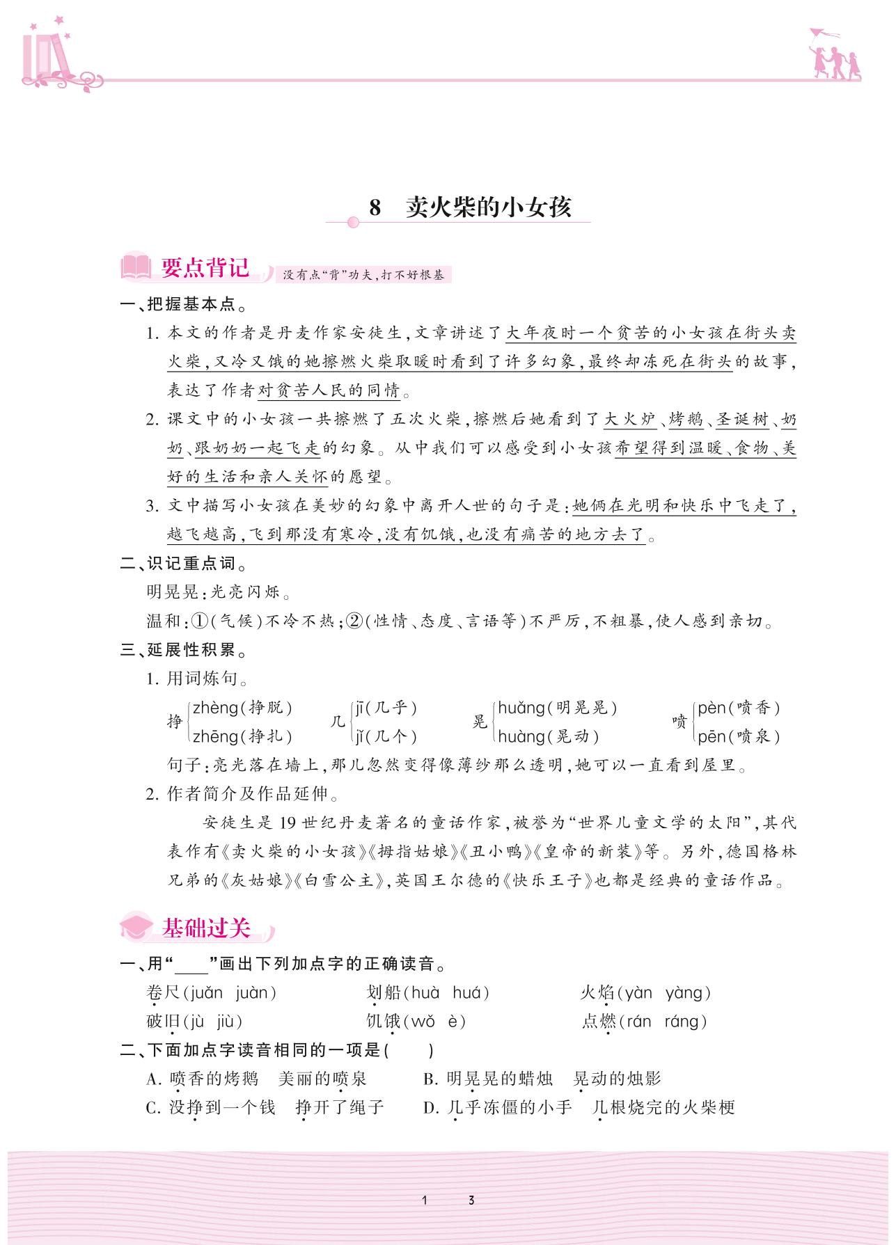 2020上册三年级语文人教版 第三单元——8 卖火柴的小女孩