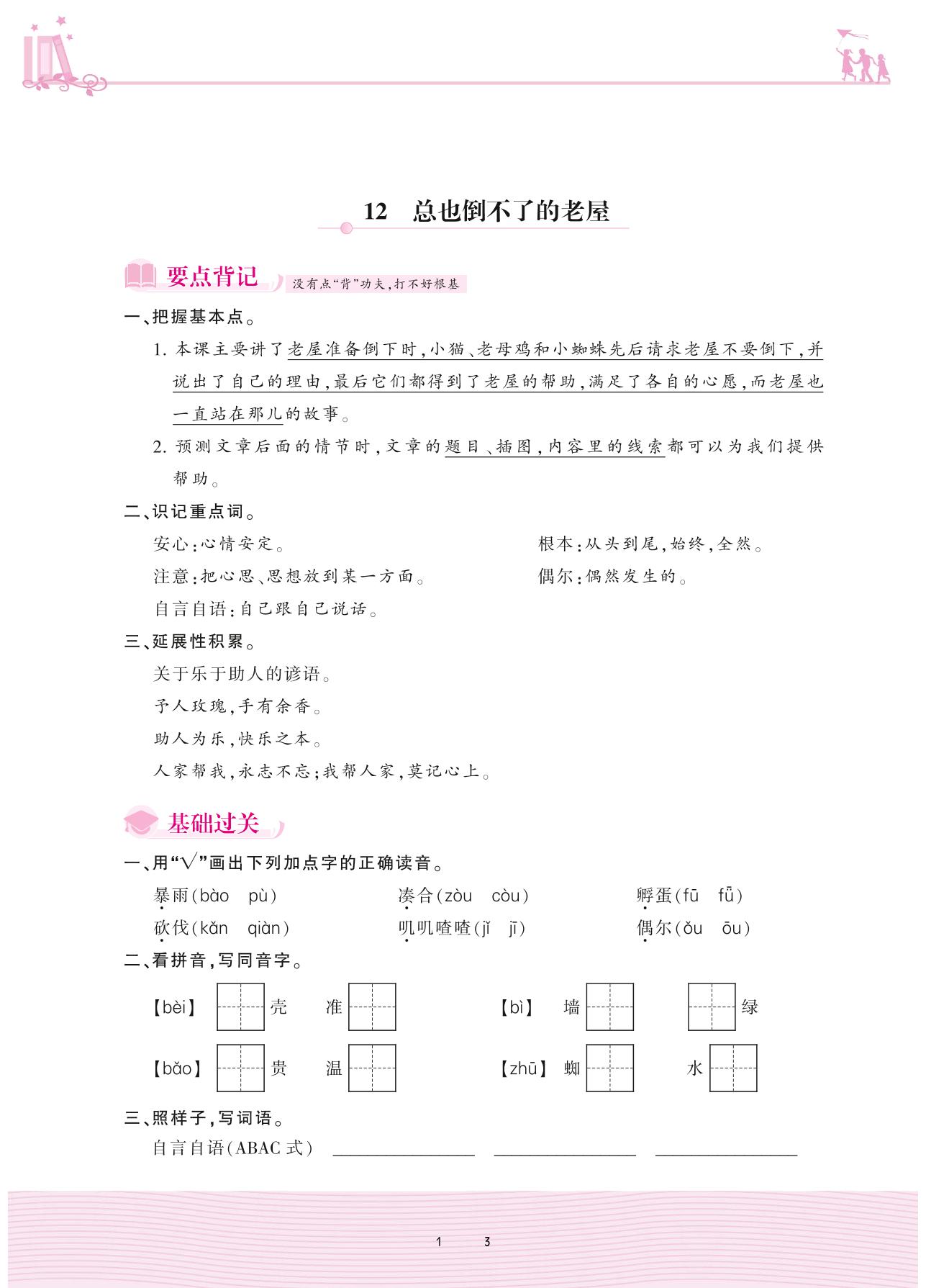 2020上册三年级语文人教版 第四单元——12 总也倒不了的老屋