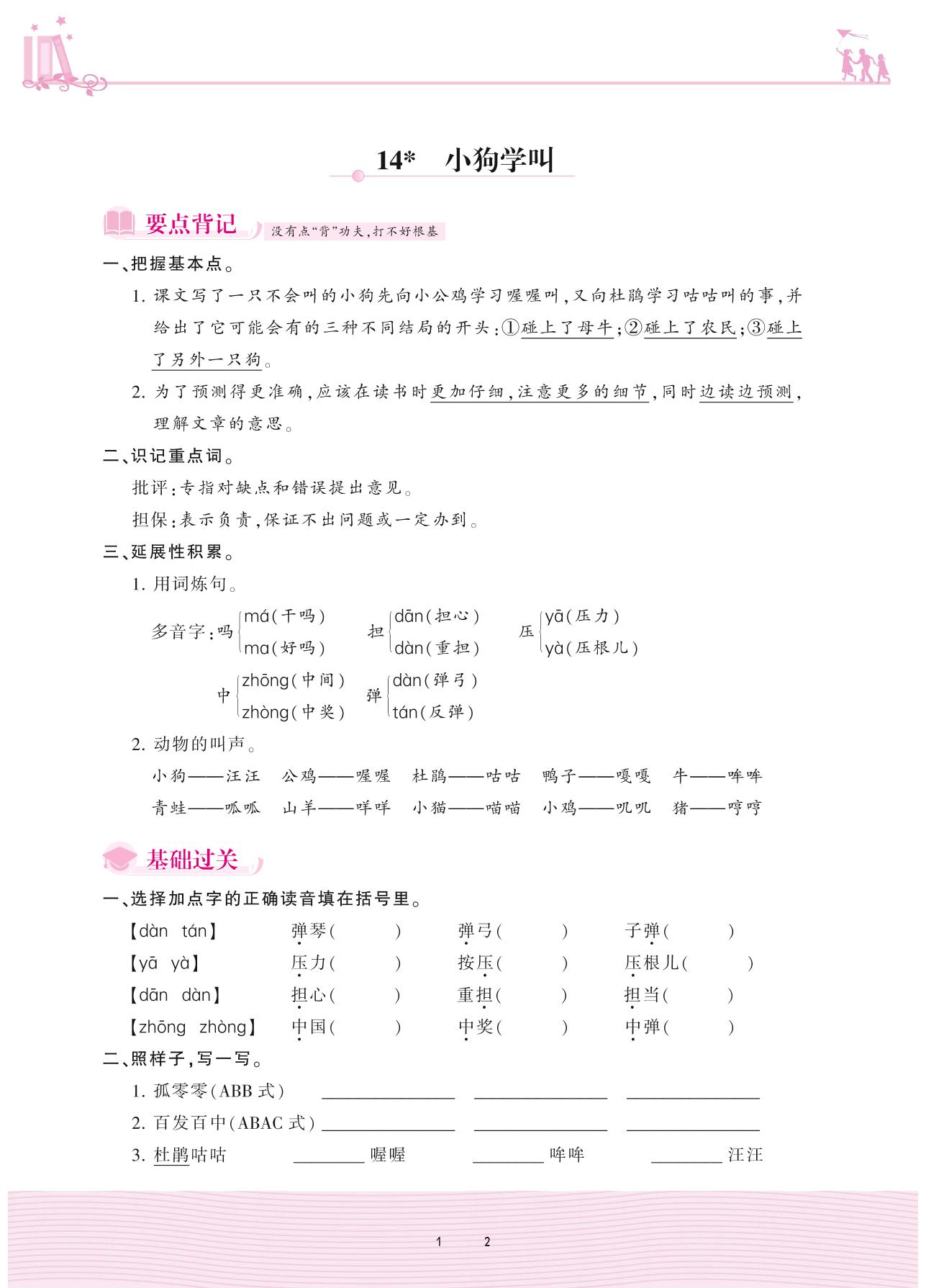 2020上册三年级语文人教版 第四单元——14 小狗学叫