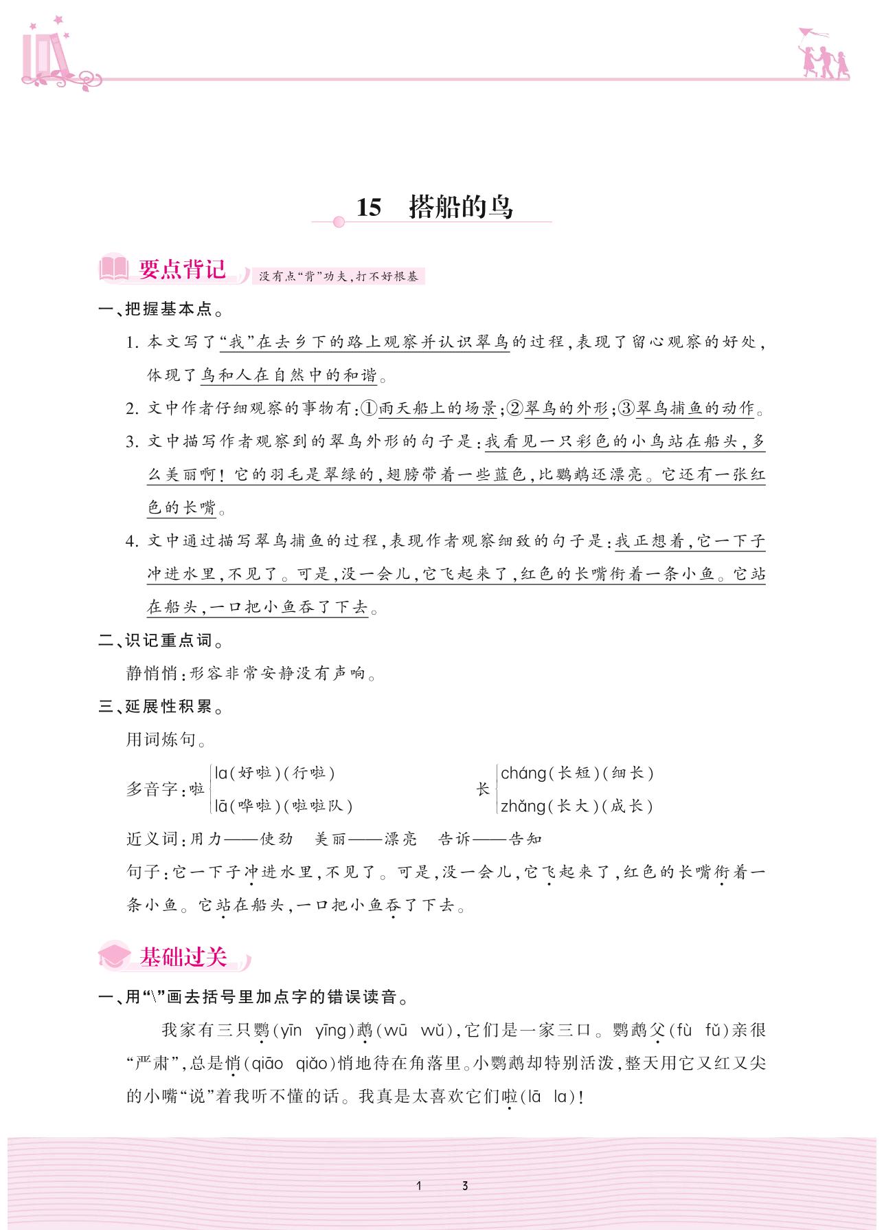 2020上册三年级语文人教版 第五单元——15 搭船的鸟