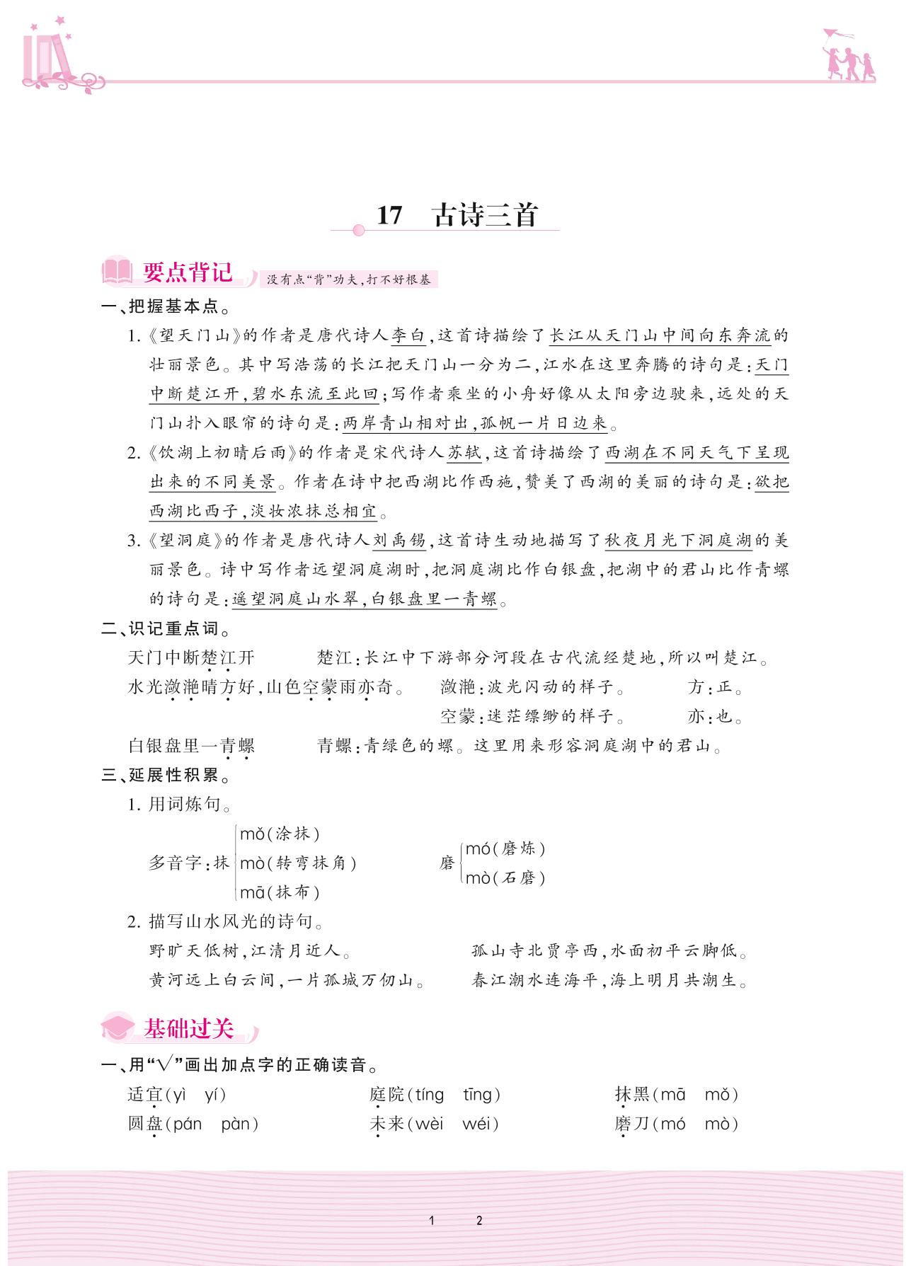2020上册三年级语文人教版 第六单元——17 古诗三首