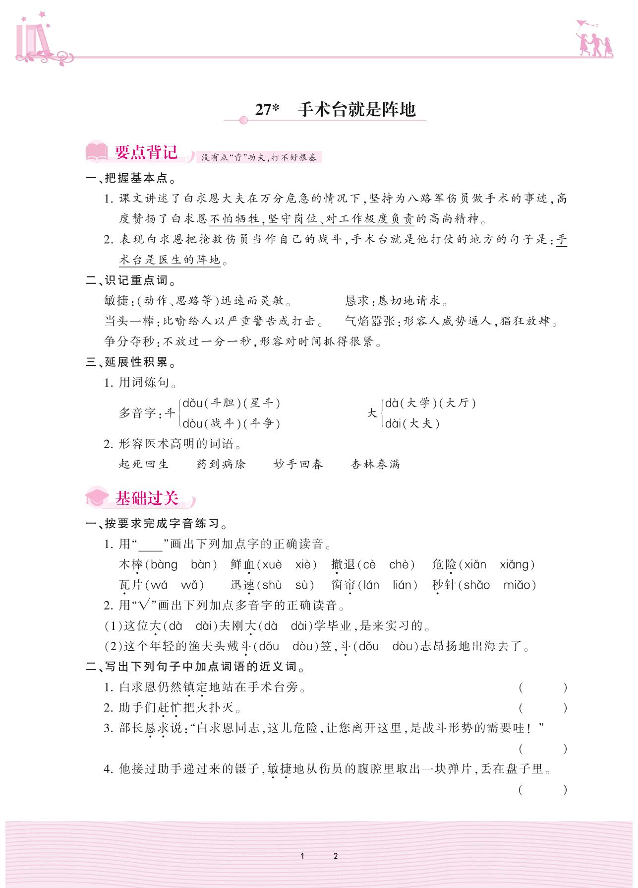 2020上册三年级语文人教版 第八单元——27 手术台就是阵地