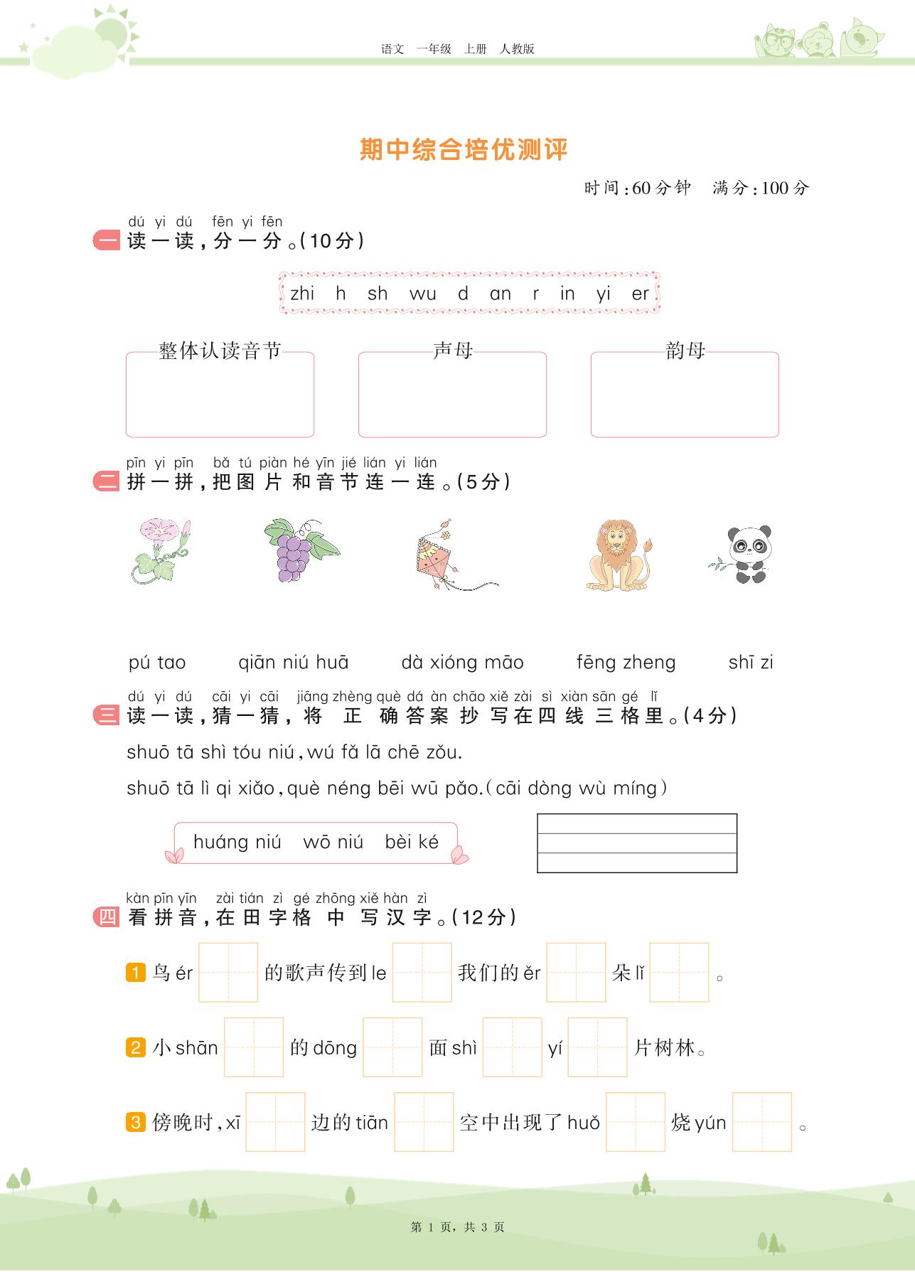 一年级语文人教版上册期中卷