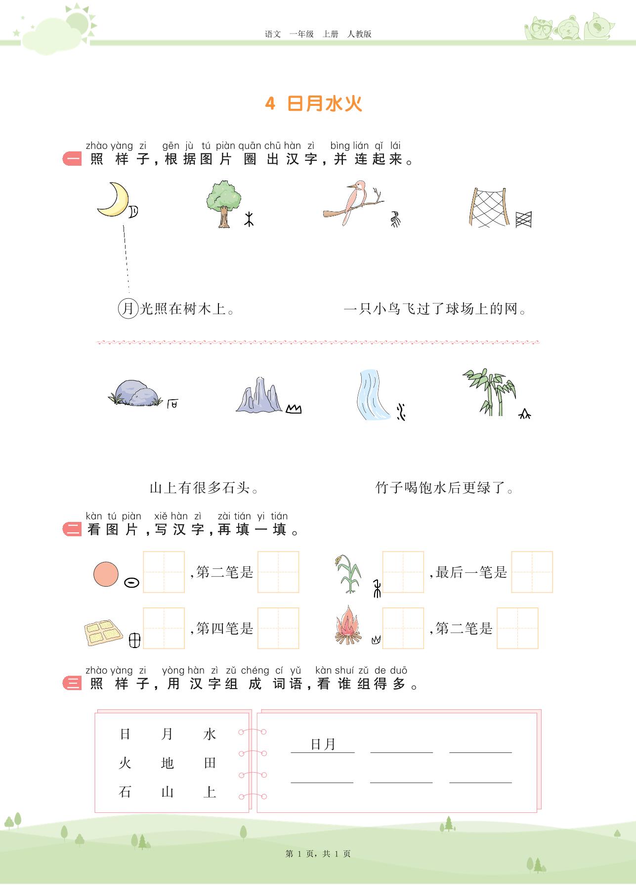 2020上册一年级语文人教版 第一单元 识字——4 日月水火