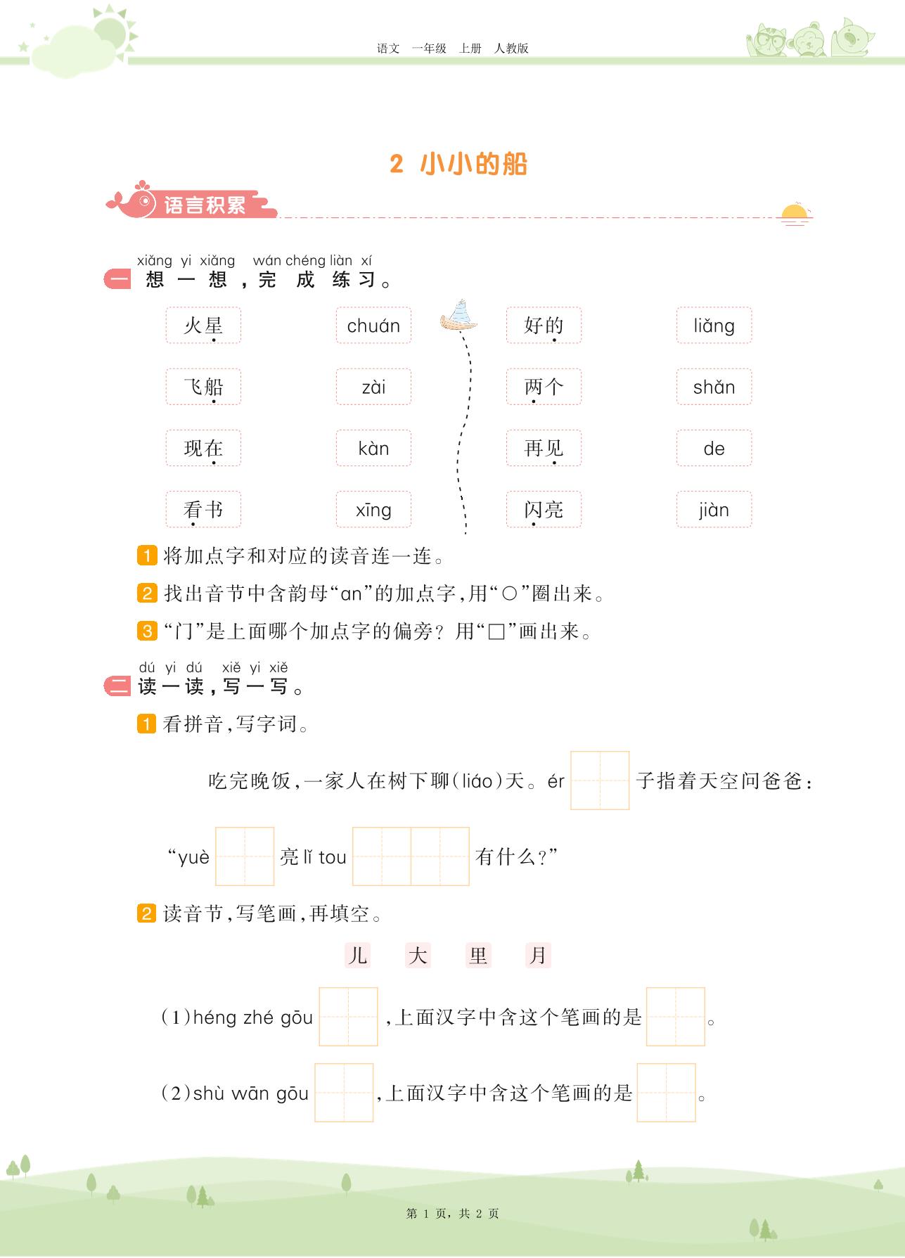 2020上册一年级语文人教版 第四单元 课文——2 小小的船