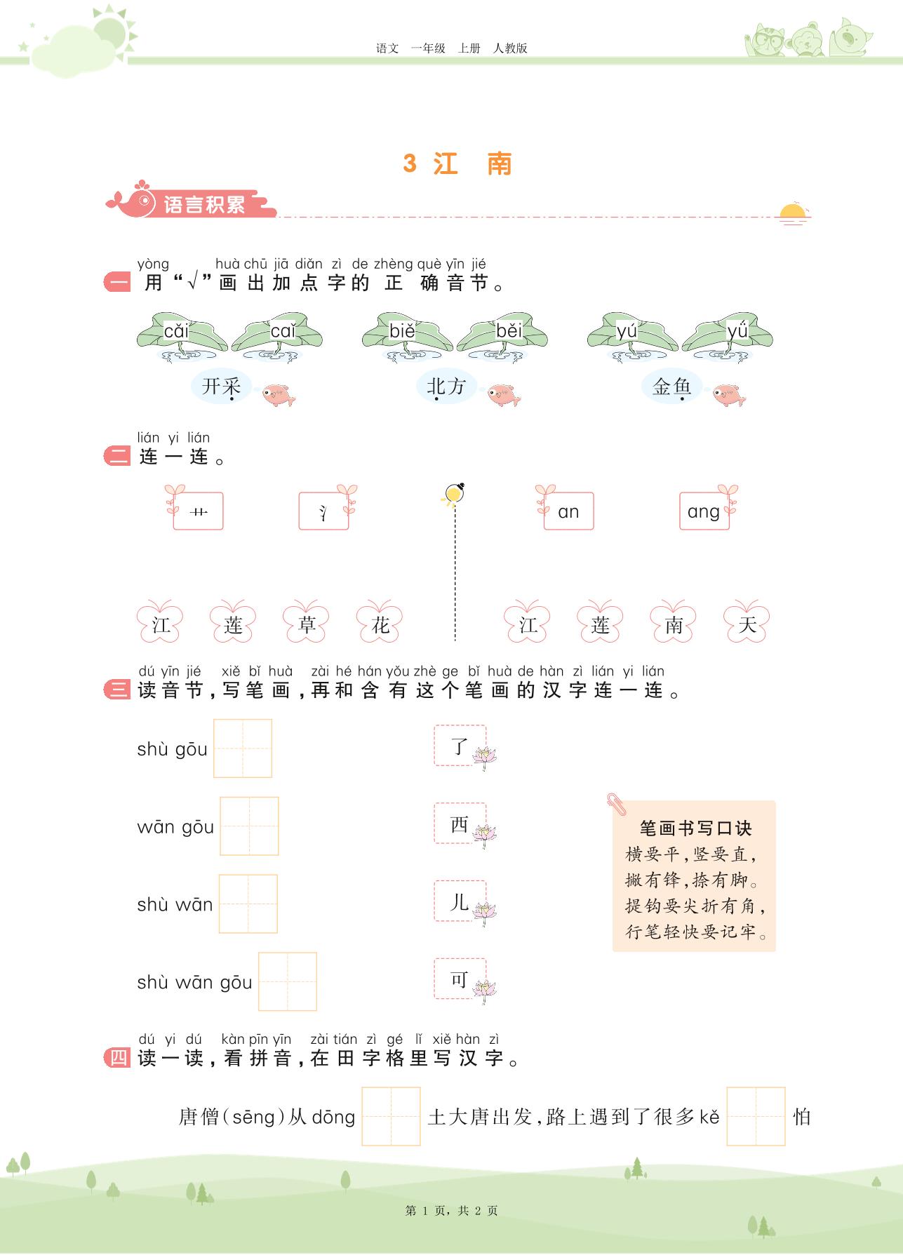 2020上册一年级语文人教版 第四单元 课文——3 江南