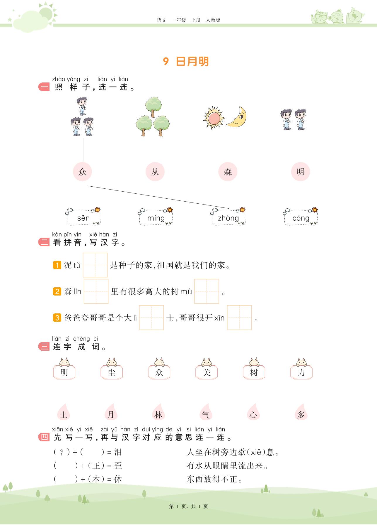 2020上册一年级语文人教版 第五单元 识字——9 日月明
